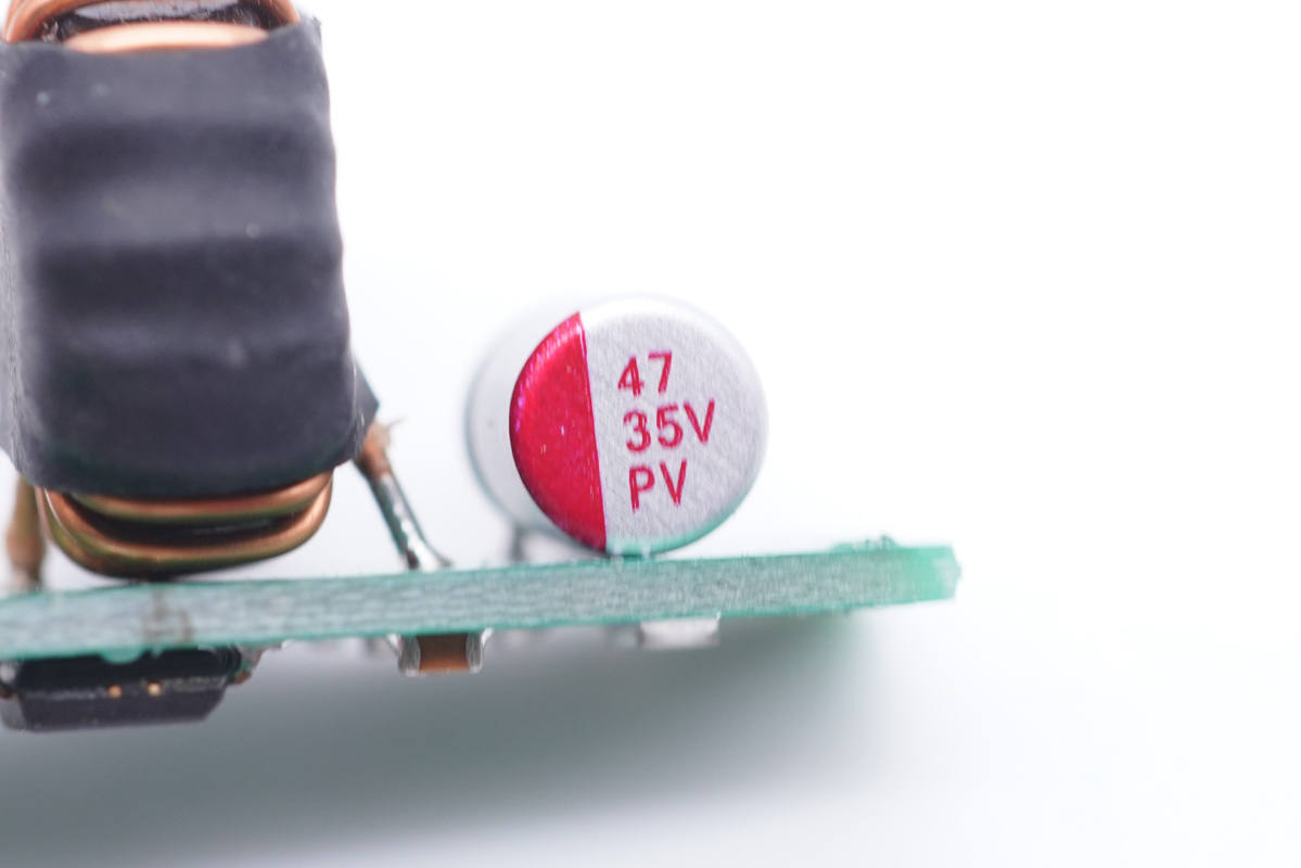 輸入濾波固態(tài)電容特寫,規(guī)格為35V 47μF。
