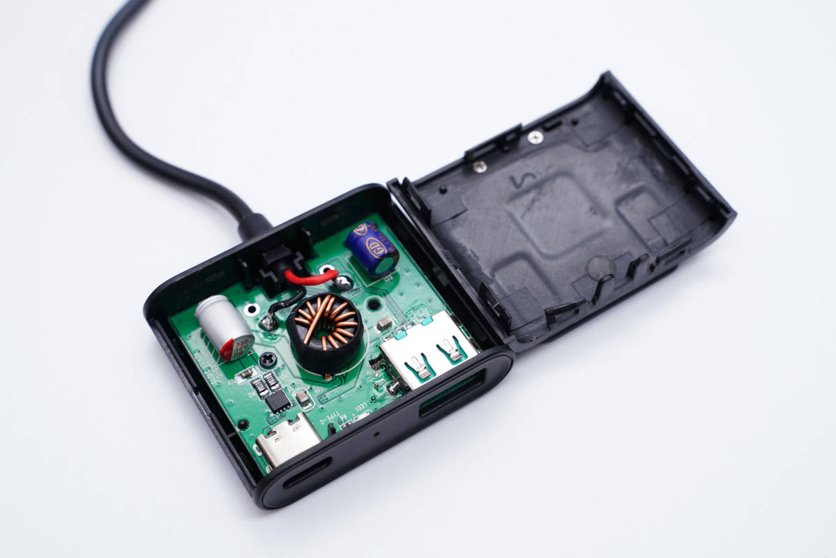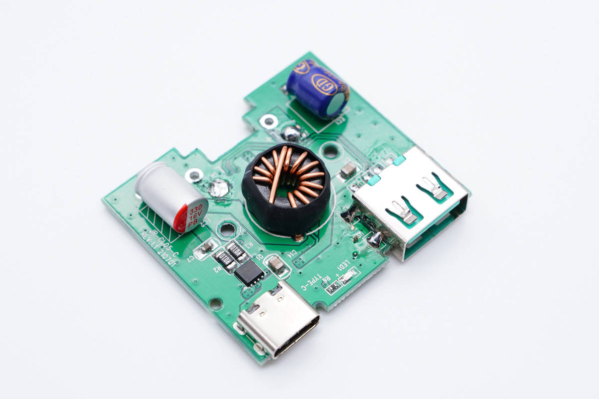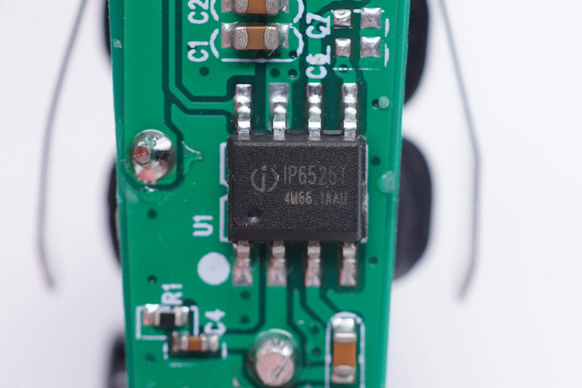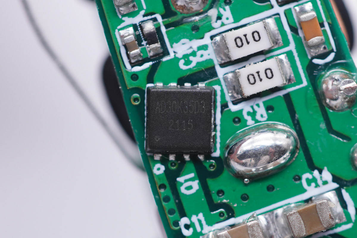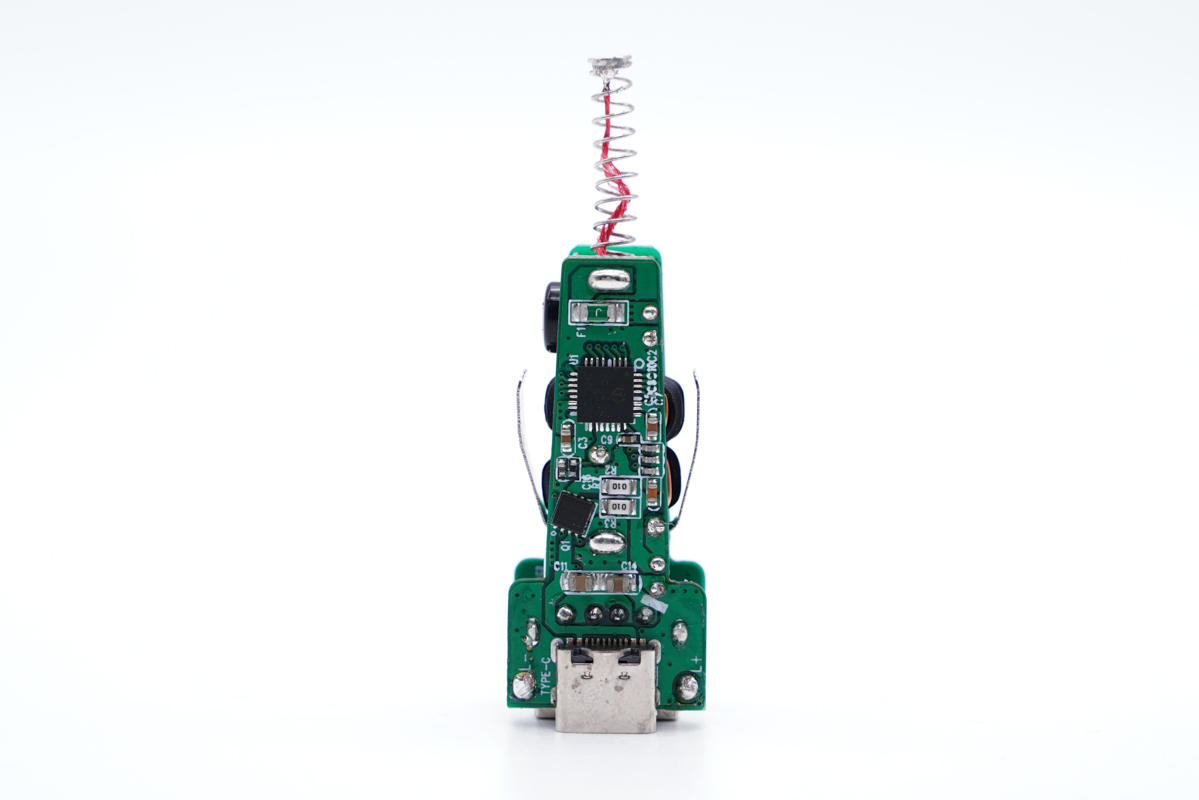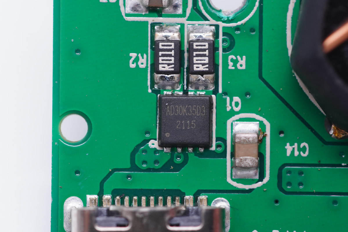板子背面很簡潔,只有一顆降壓協(xié)議IC。總體來看,設計方案和車充C口母座所在小板的基本一樣。