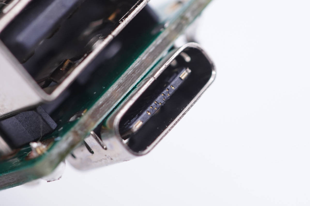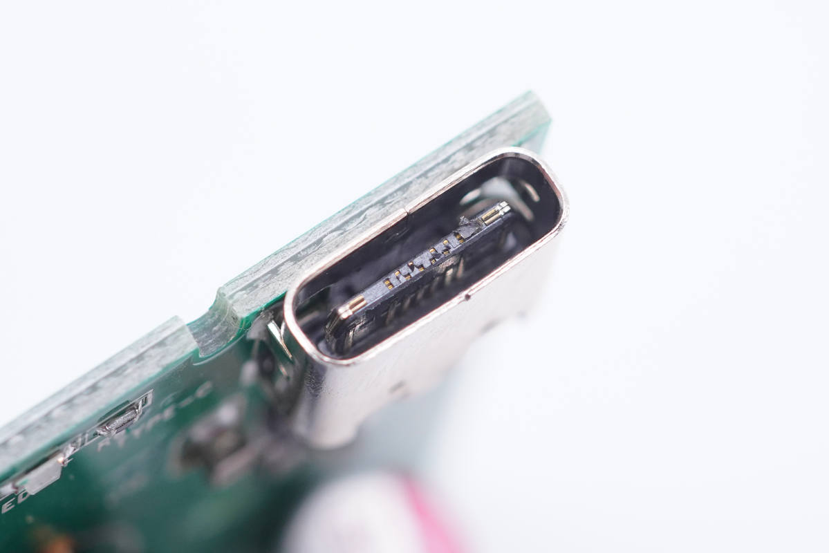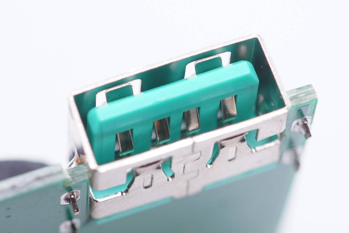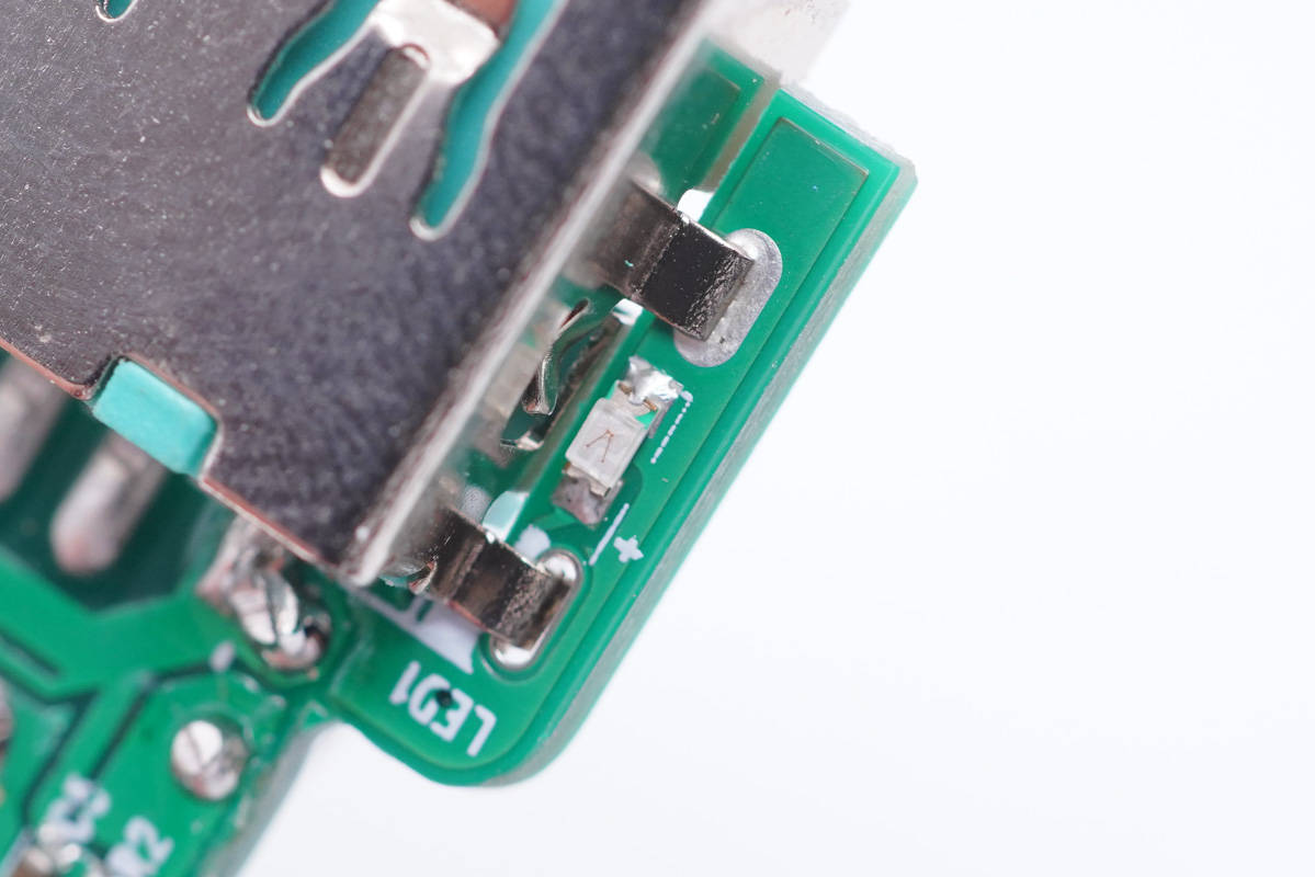 USB-A母座過孔焊接,旁邊有一顆LED燈。