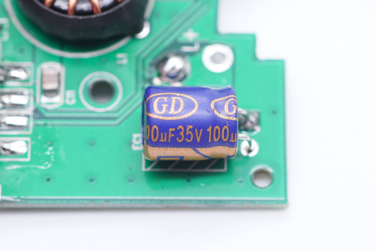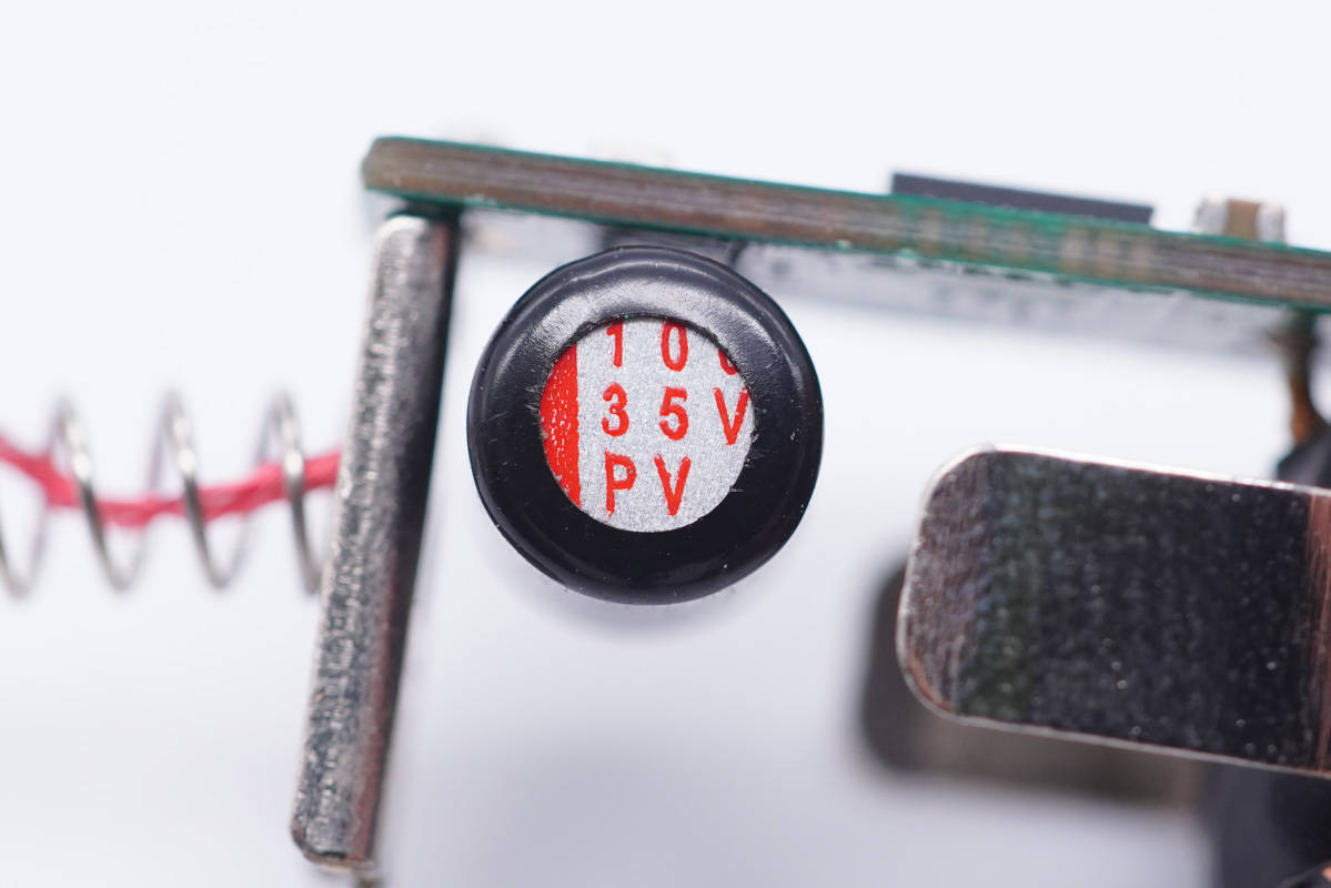 輸入濾波電解電容特寫,規(guī)格為35V 100μF。
