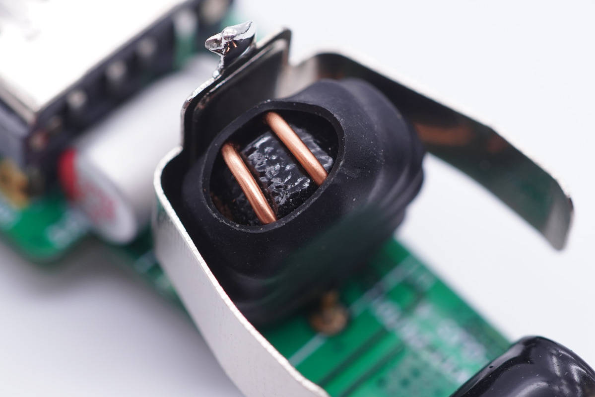 輸入端正極彈簧內(nèi)焊接一根紅色導線降低電阻。
