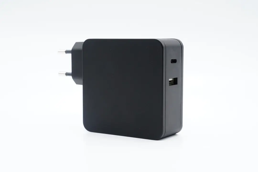 THEONE 65W快充充電器采用歐規插腳,看起來這是一款出口的產品。輸出配置了1A1C雙接口。USB-C口支持5V3A、9V3A、12V3A、15V3A、20V3.25A五組固定電壓檔位,USB-A口支持5V2.4A輸出,可同時為電腦和手機充電。