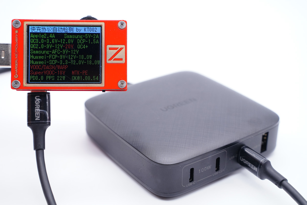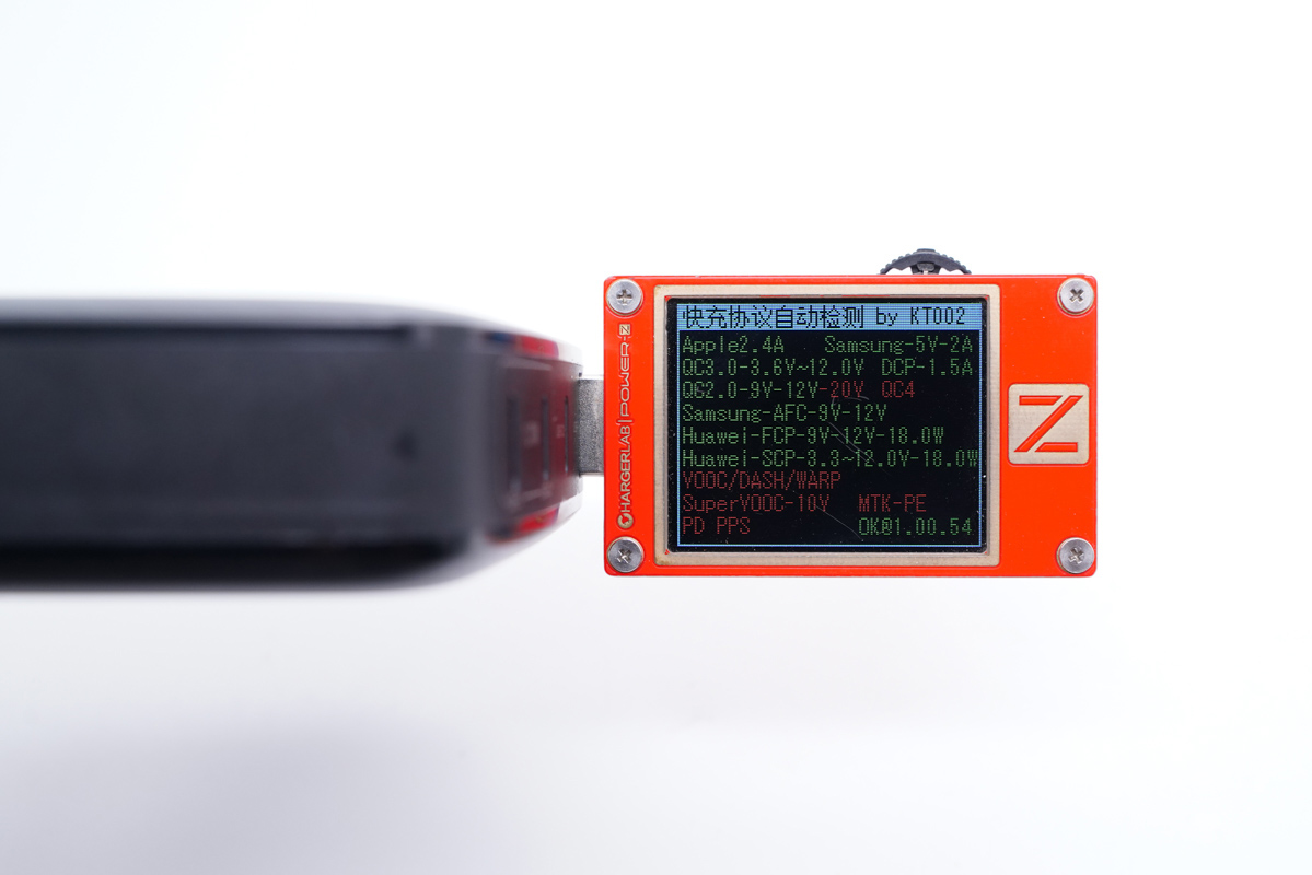 使用ChargerLAB的POWER-Z KT002讀取USB-C1的快充協議,USB-C1支持PD、PPS、Apple2.4A、QC4快充協議。