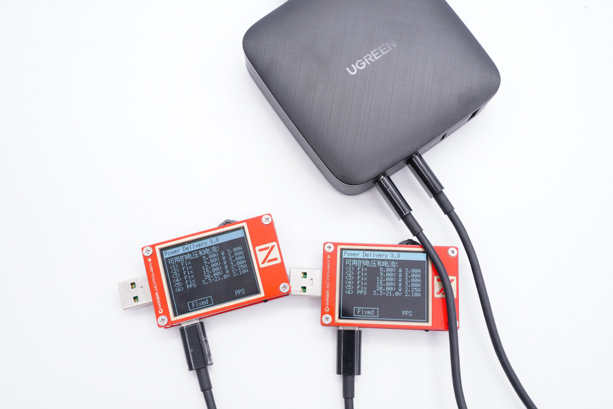 USB-C1支持5V3A、9V3A、12V3A、15V3A、20V5A五個固定電壓檔位以及3.3-21V5A一組PPS檔位。