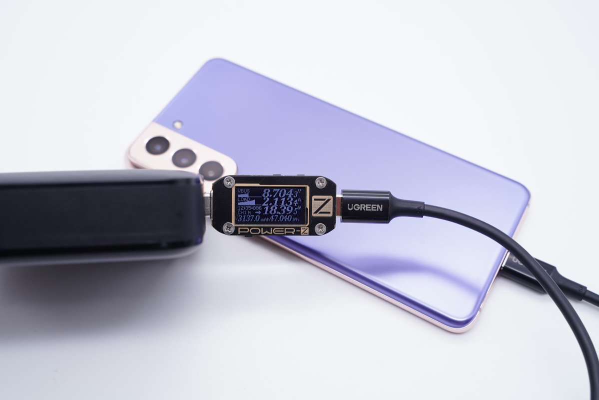 三星S21支持25W PPS快充,使用USB-C1可以為三星S21提供20W+的快充功率。
