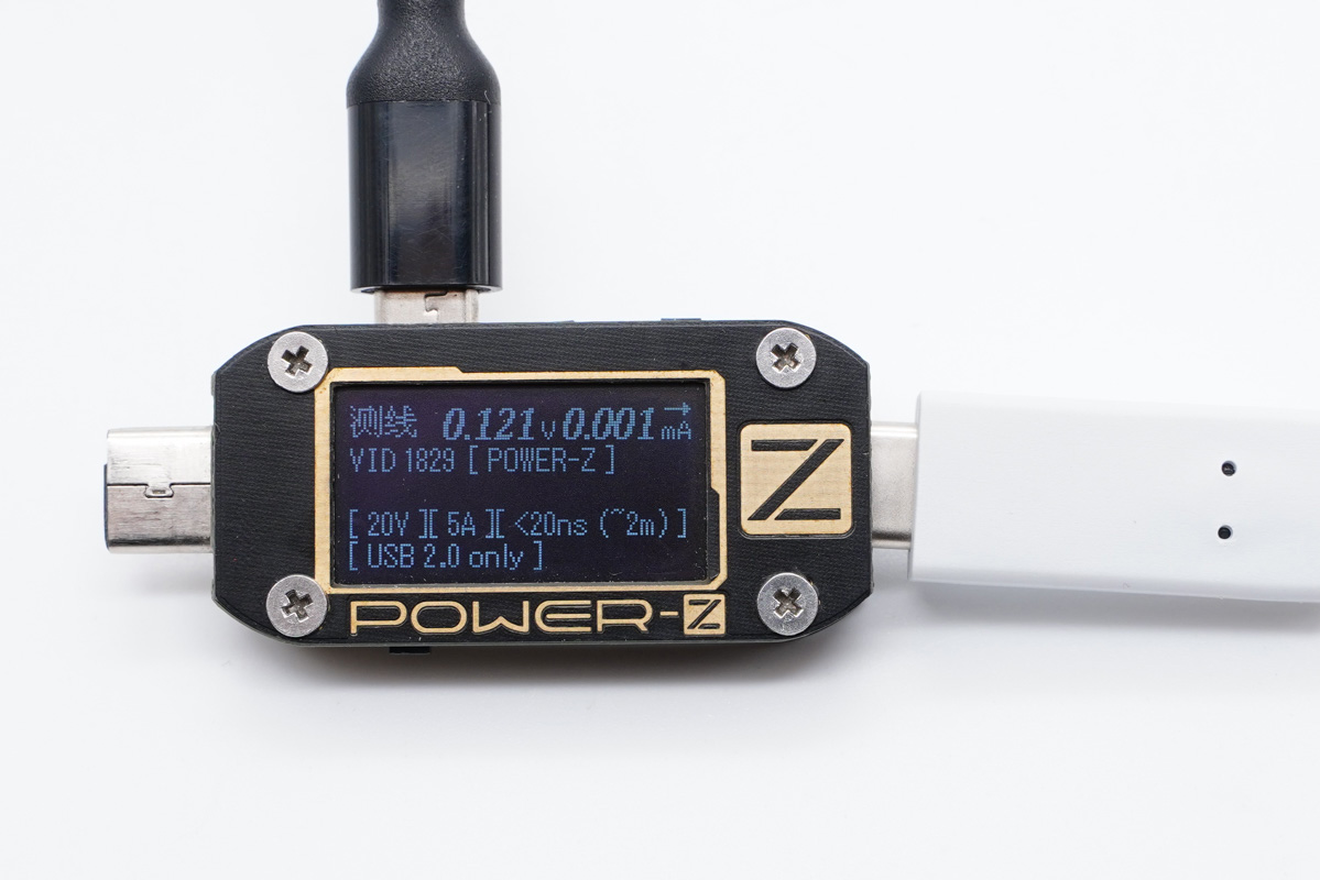 使用POWER-Z KM001C讀取線材的信息,線材支持20V5A 100W的功率傳輸,此外還支持數據傳輸,傳輸標準為USB2.0。