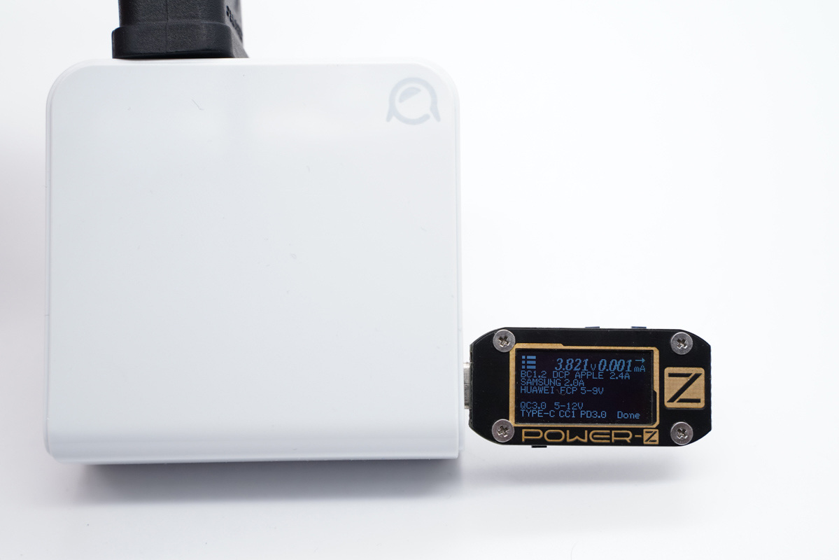 但是將空載的線材換成蘋果C to L快充線時會產生影響,官方消息受蘋果快充線自帶的MFi芯片影響,即使蘋果快充線空載的狀態下充電器依舊會默認雙口同時輸出。