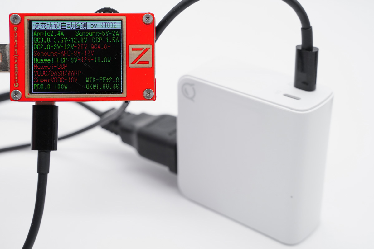 使用POWER-Z KM001C讀取USB-C1接口的快充協議,支持Apple2.4A、QC3.0、PD、FCP快充協議。
