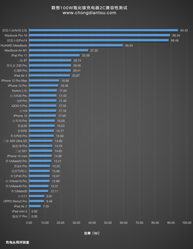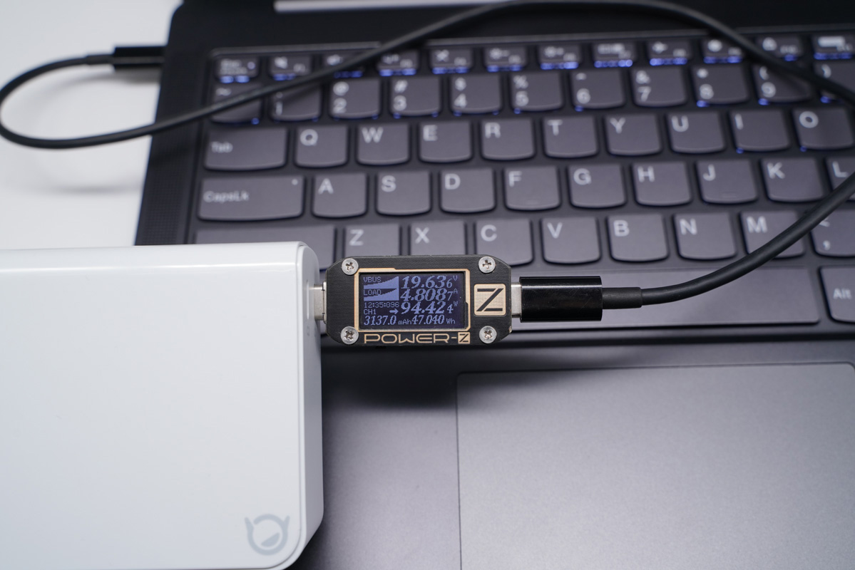 也可以滿足絕大部分筆記本的功率需求,為聯想小新Air充電功率為19.63V 4.80A 94.42W。