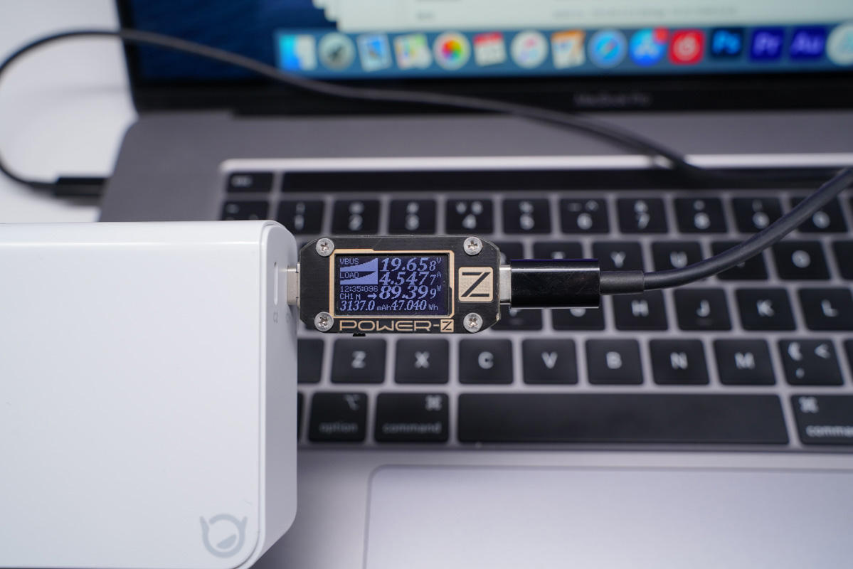 當然也可以滿足MacBook Pro 16的充電功率,實測功率為19.65V 4.54A 89.39W。