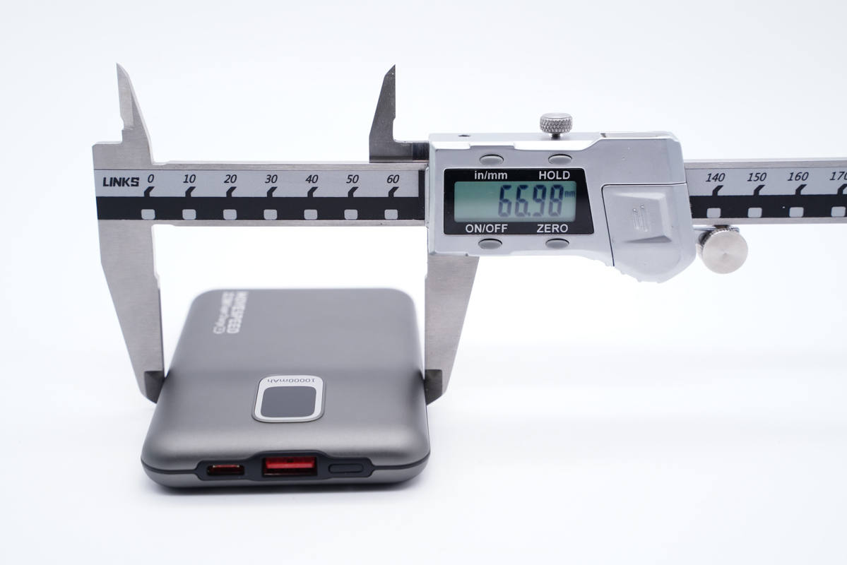 通過計算我們算出其電池的能量密度,按照能量密度公式:電池能量/體積=10000mAh*3.85V/12*62*80mm,轉換單位可知該電池的能量密度為646.84Wh/dm。對比市面上最常見的1260110電池,能量密度為467.17Wh/dm,能量密度相較提高了38%,這就是該款充電寶輕薄的核心原因。