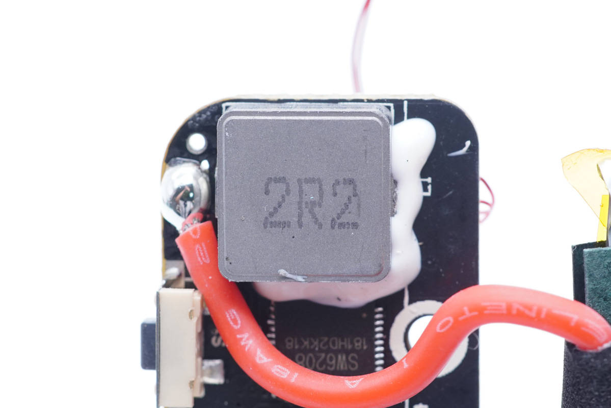 2R2升降壓電感特寫,打膠加固。
