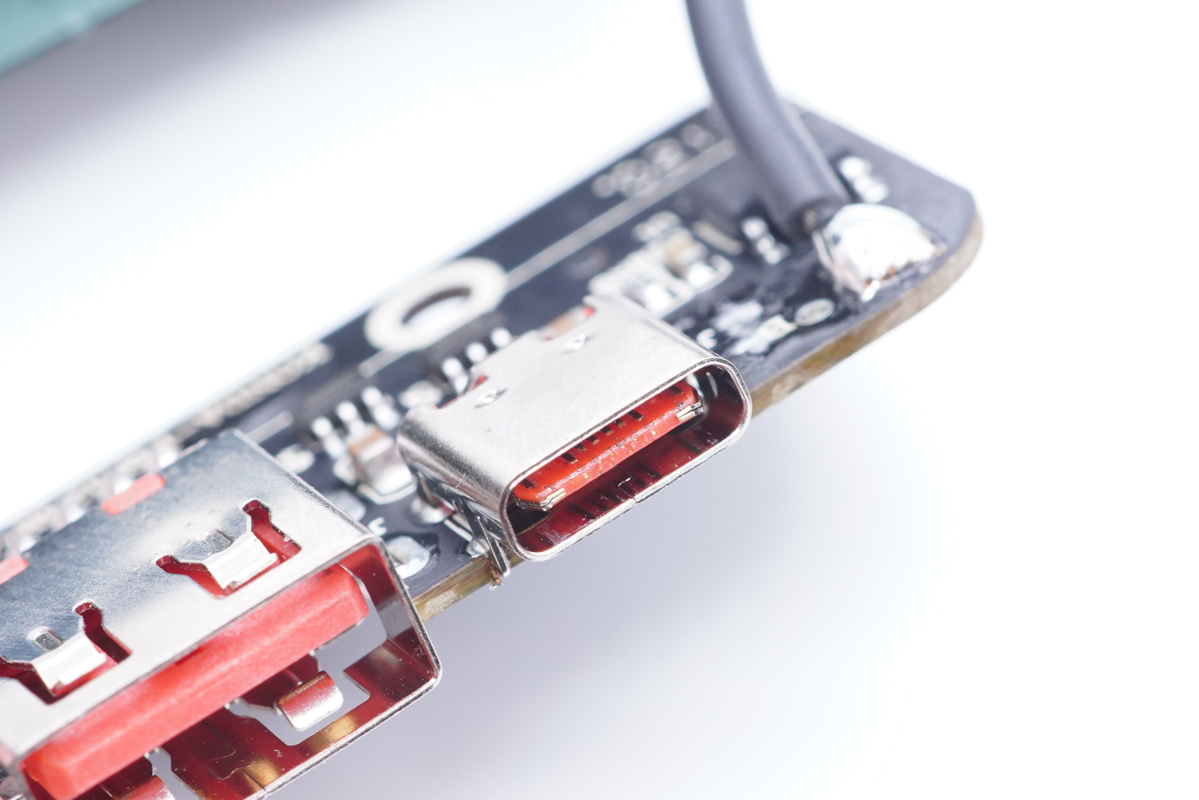 USB-C母座特寫,過孔焊接。