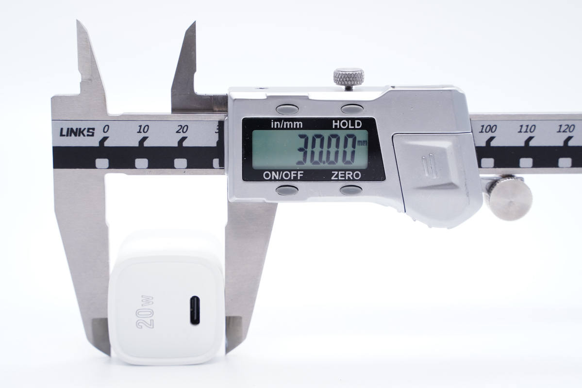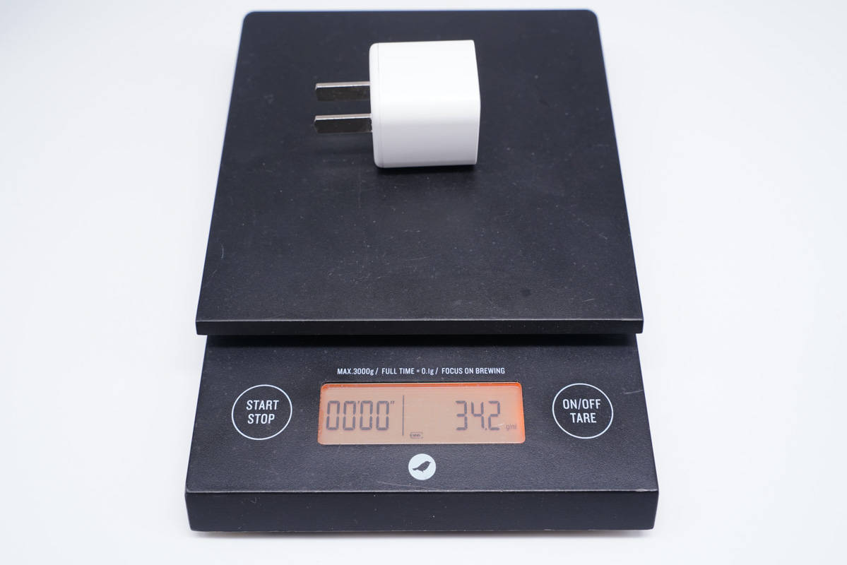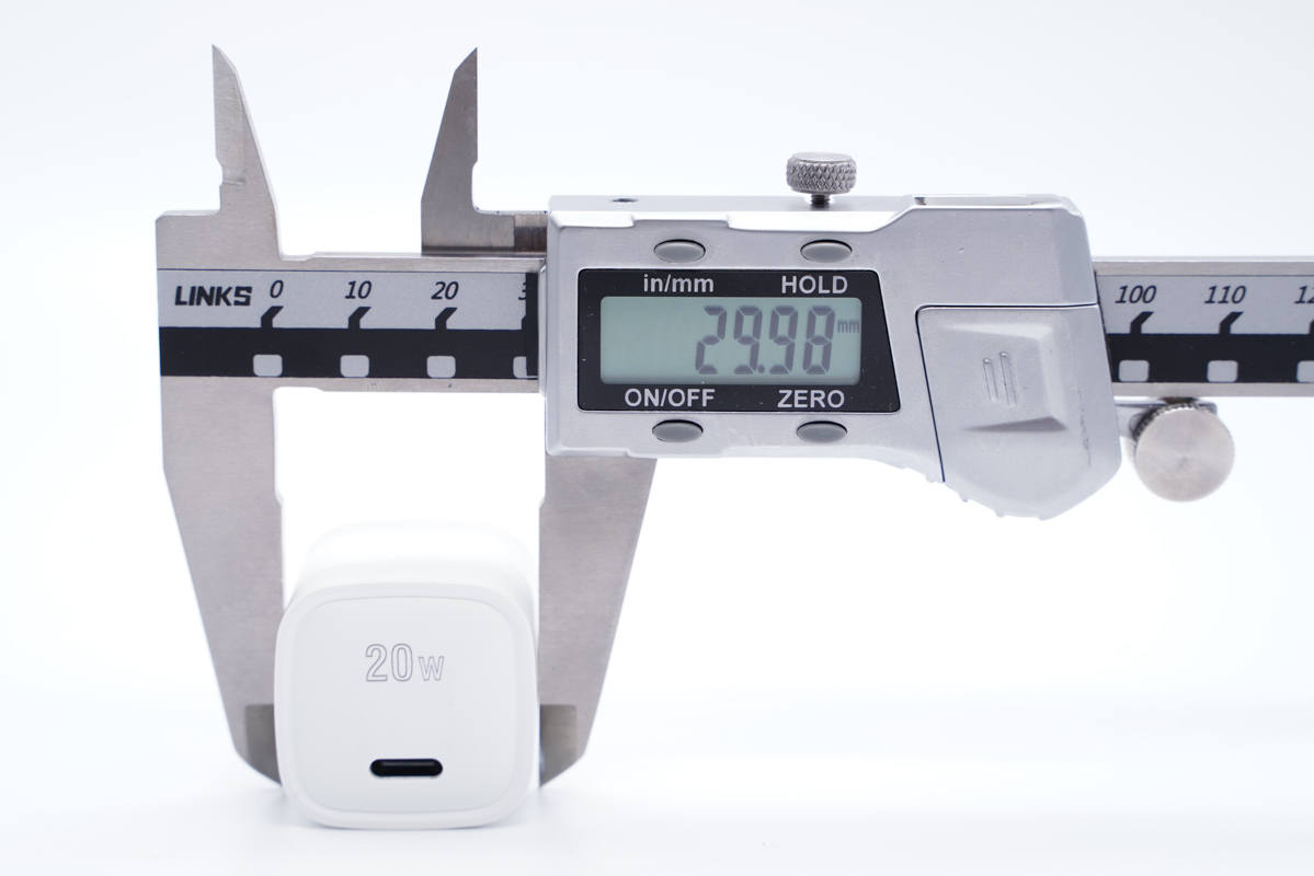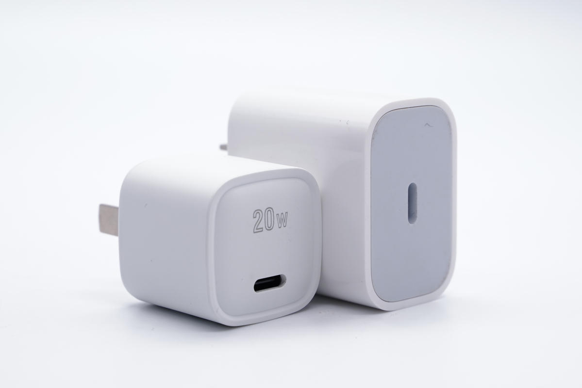 和蘋果20W充電器直觀對比,體積優勢明顯。