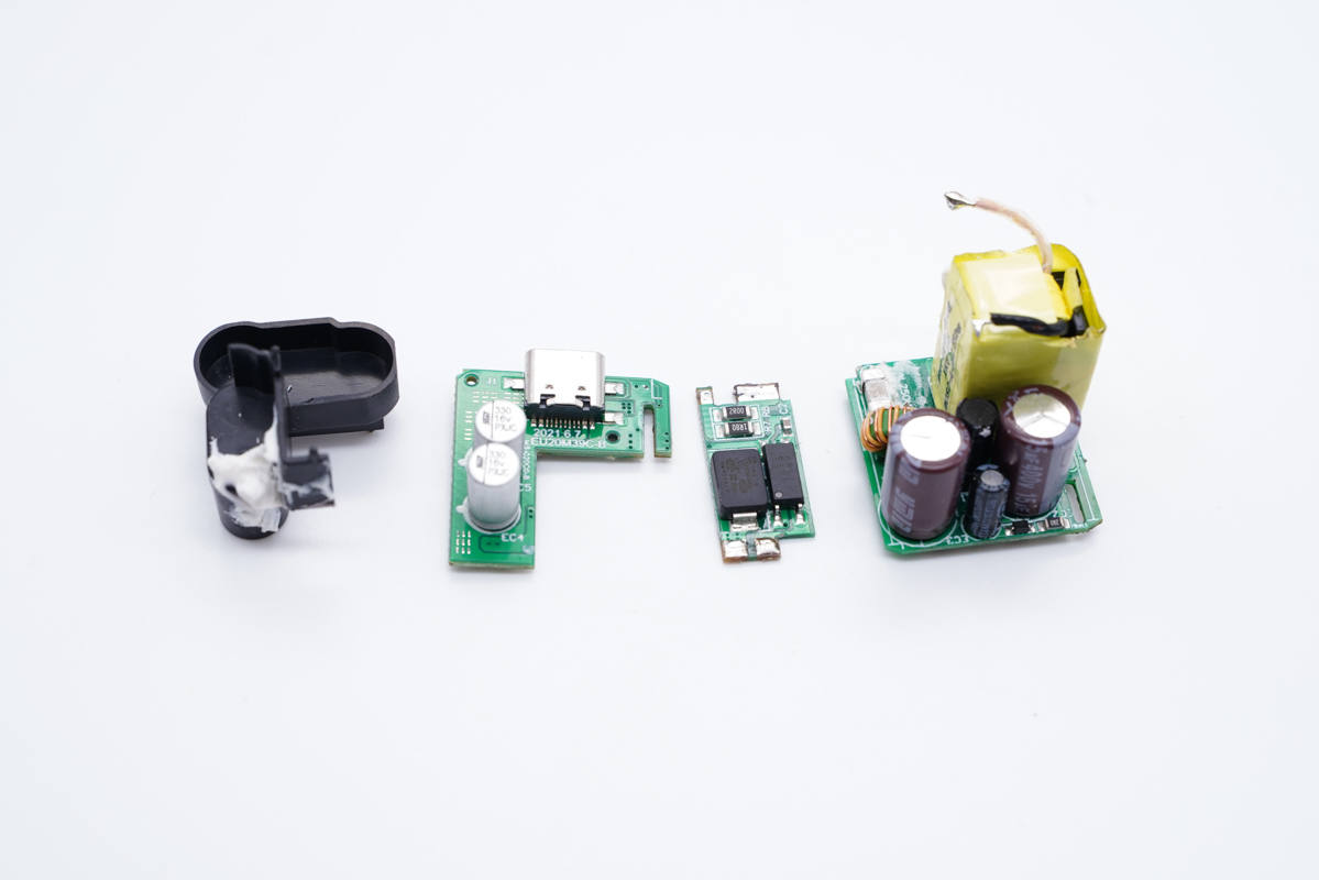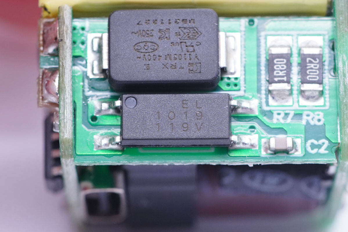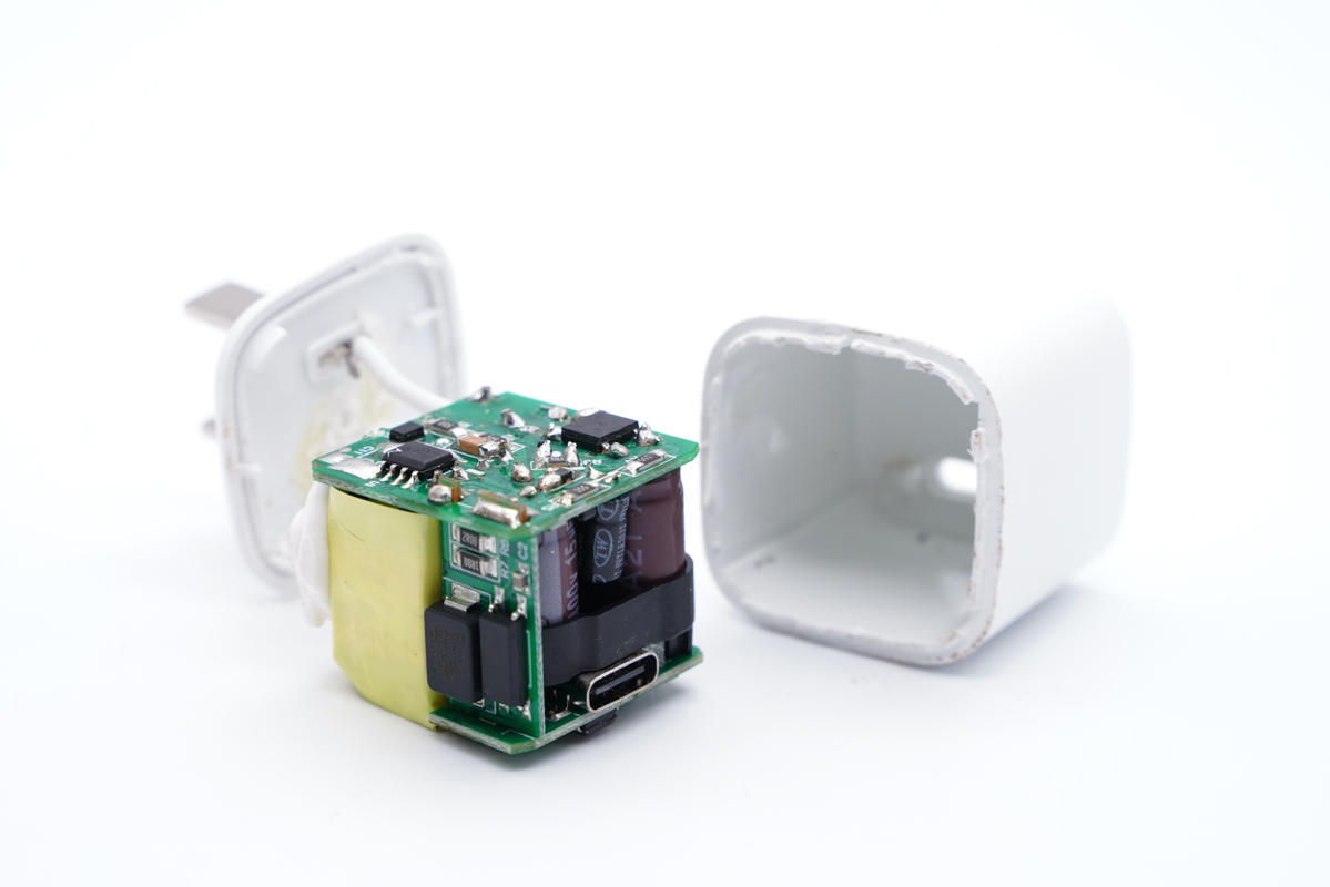 可以清楚地看到該款充電器電源主控芯片是采用誠芯微科技CX7527C,這是一顆高性能多模式PWM反激式控制器。該產品方便用戶以較少的外圍元器、較低的系統成本設計出高性能的交直流轉換開關電源。其提供了極為全面和性能優異的智能化保護功能,包括逐周期過流保護、過載保護、軟啟動、芯片過溫保護、VDD欠壓/過壓鎖定保護功能。