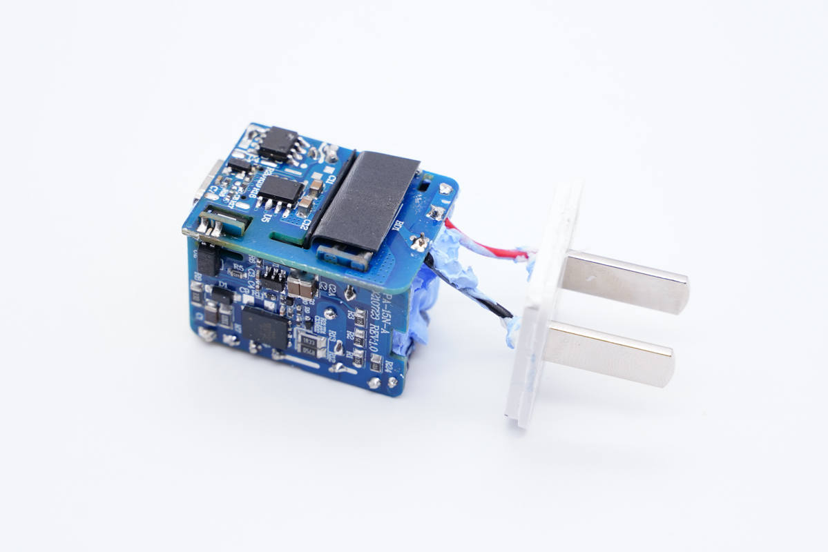 而近期推出的這款迷你30W氮化鎵快充,憑借氮化鎵的加持,功率密度更近一步,達到了1.12W/cm3,整個充電器相當小巧,走在了整個行業的前端。另外充電器兼容快充協議豐富,具備齊全電壓檔位,也相當實用。下面充電頭網繼續對這款氮化鎵迷你充進行拆解,看看用料做工如何。