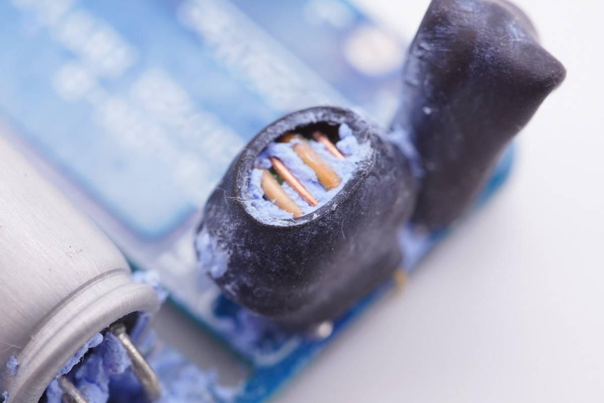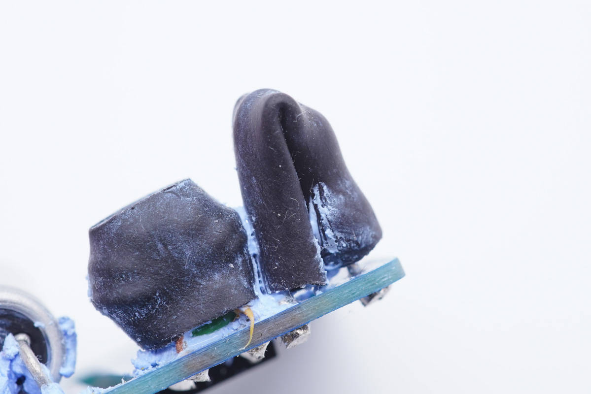 PCBA模塊元器件間的空隙填充藍色導熱硅膠,用于導熱和絕緣。
