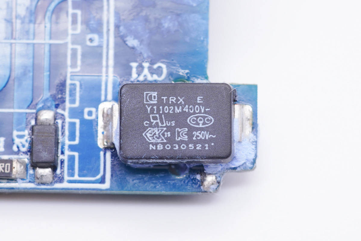 將小板拆分開,變壓器右側還有一顆貼片Y電容。