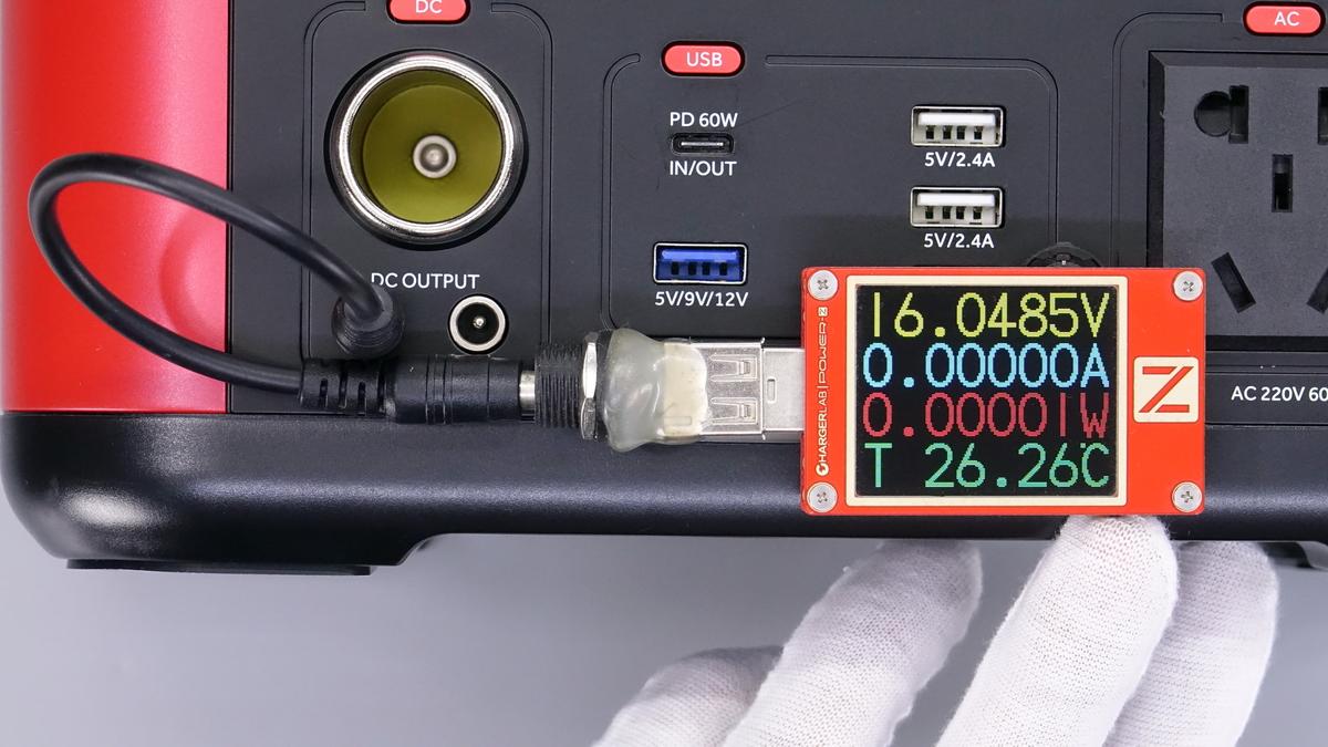 這款戶外電源支持車載充電、市電充電和太陽能充電,可選方式豐富。但也得強調,其不支持DC和PD同時快充,雙口都使用的情況下優先進行PD快充,DC輸入功率幾乎為0。