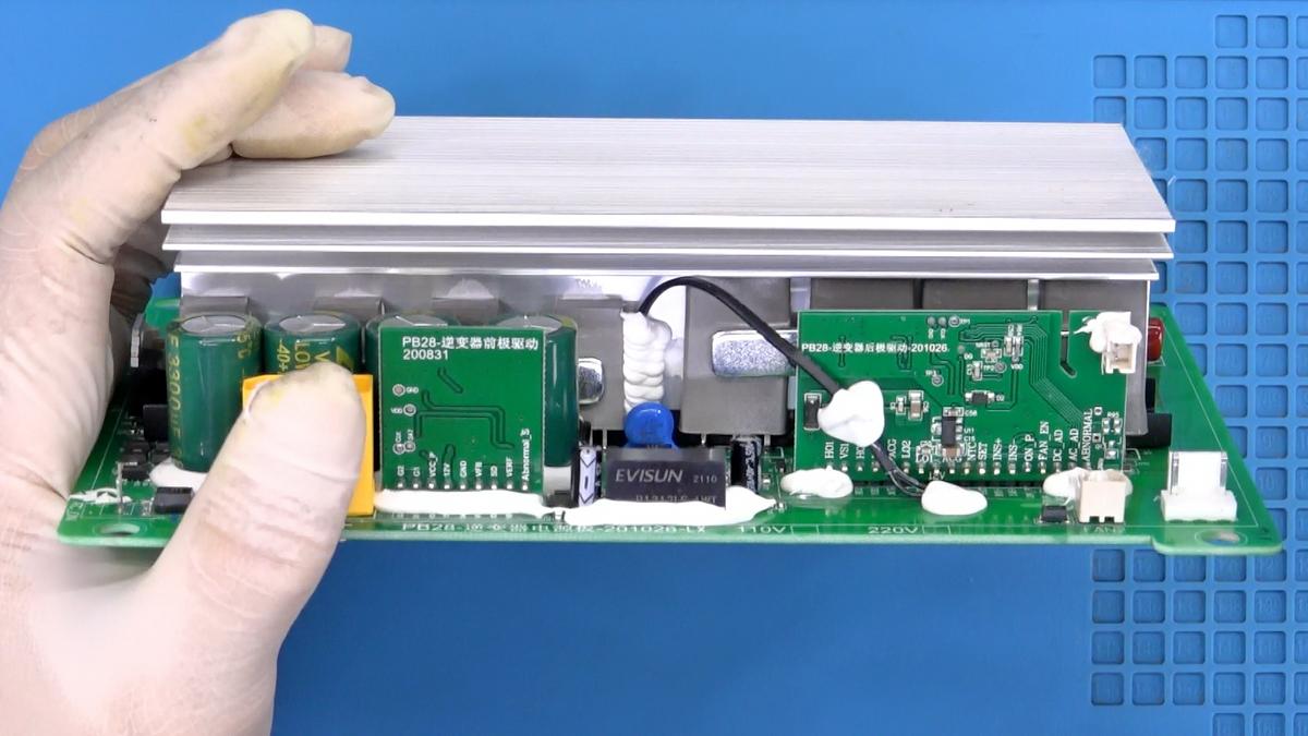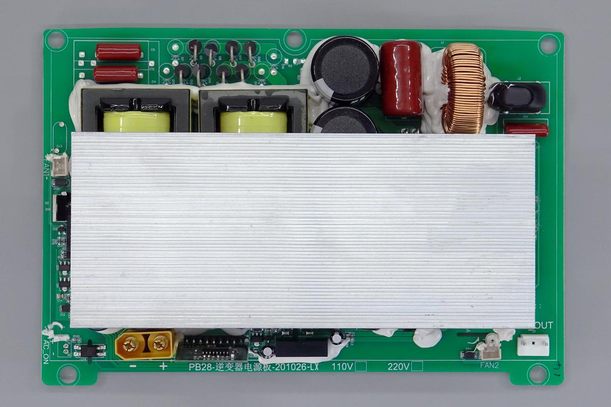 板子另一側設有逆變升壓變壓器、電容、電感等器件,而且打膠加固。