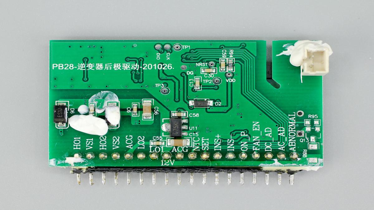 小板另一面,是逆變器的輸出調制,一顆單片機搭配兩顆驅動器。