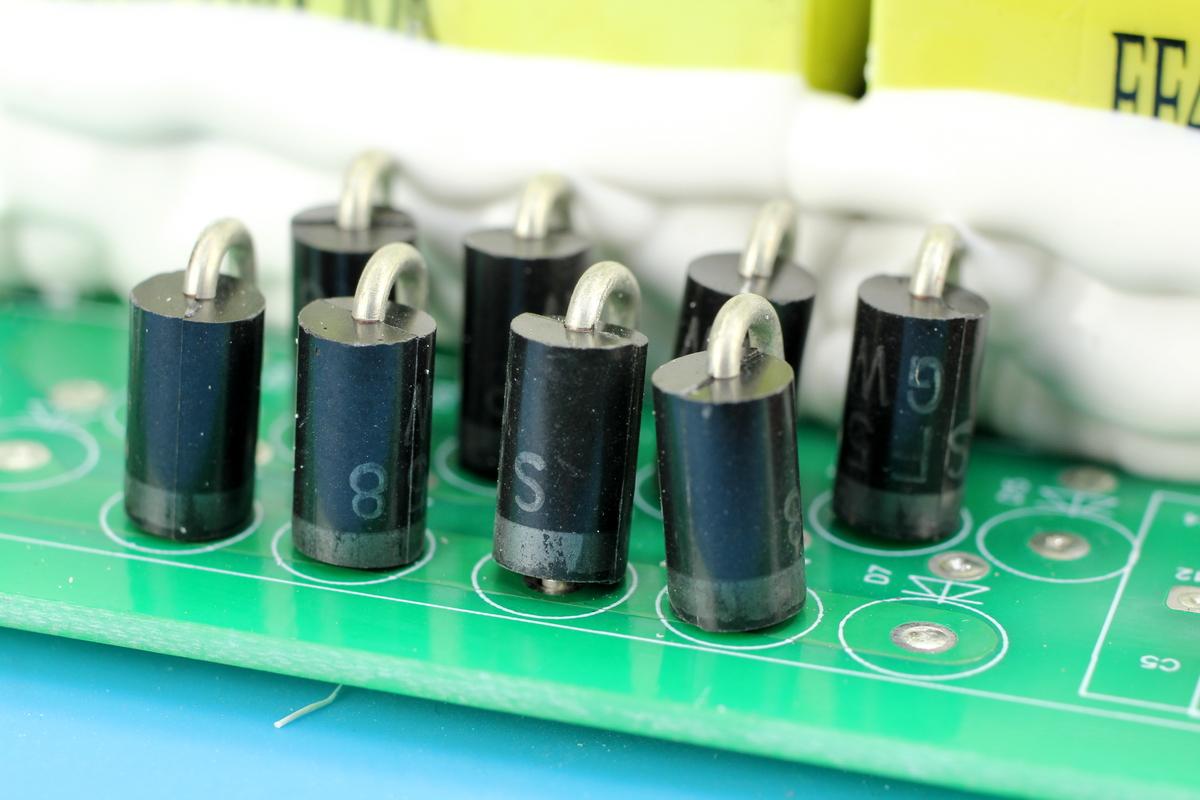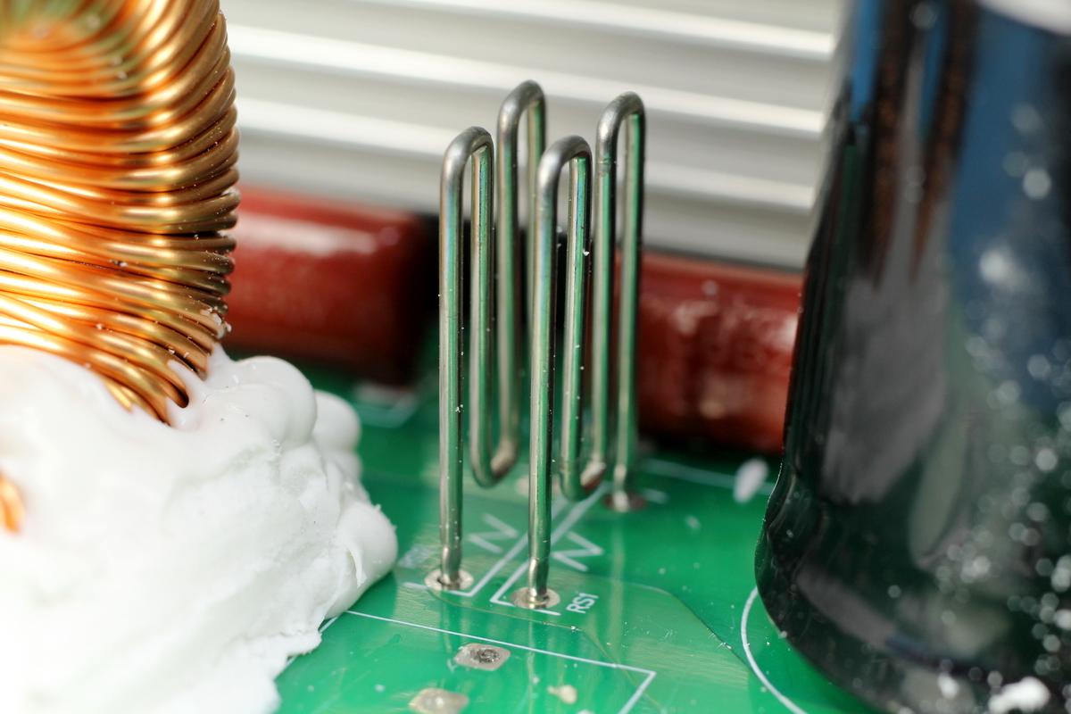 電路板背面有多顆磁環電感,套熱縮管絕緣并打膠固定。