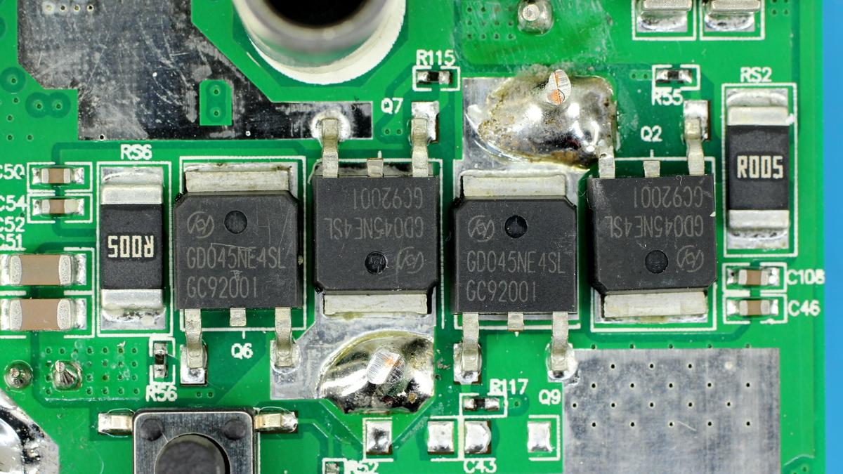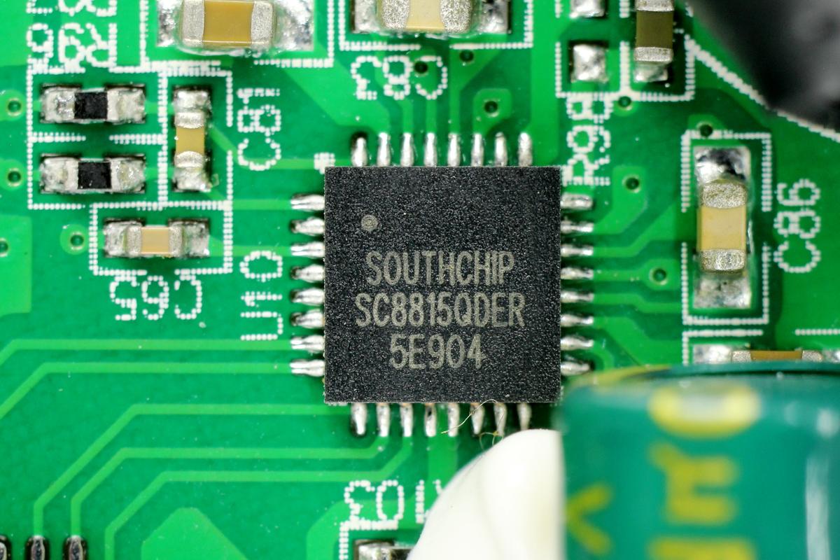 此外拆解還發現,逆變升壓控制器來自意法,升壓MOS管則采用威兆半導體的VS40200AT。電池組充電、以及UBS口放電均采用南芯SC8815方案,此外配有電容進行輸出濾波,保證輸出純凈。
