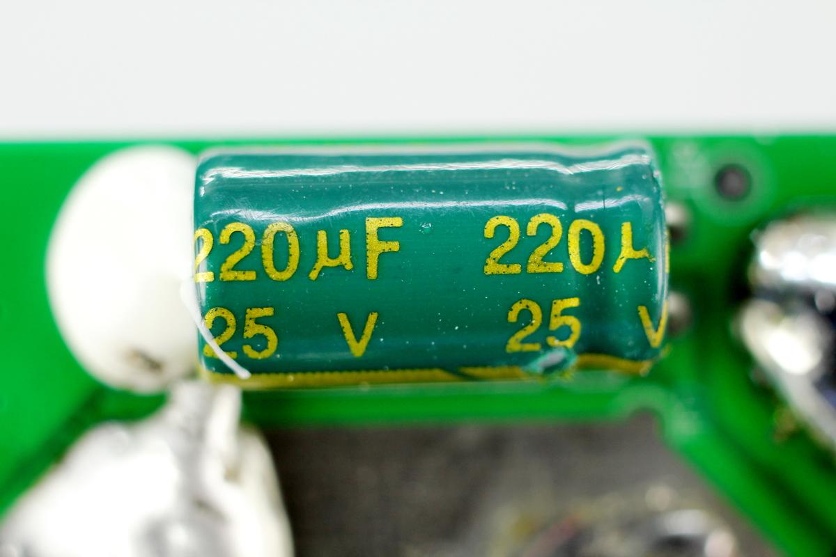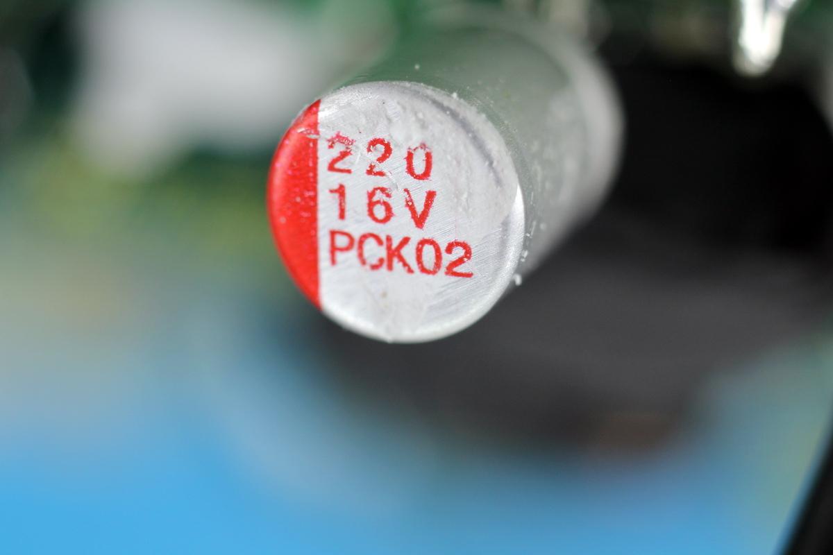 濾波電解電容特寫,規格為25V 220μF,用于USB-C口輸出濾波。