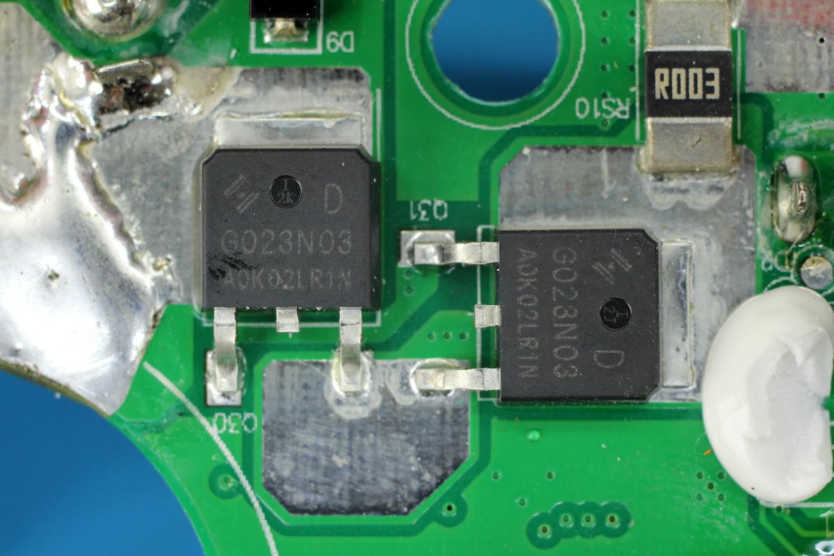MOS管型號均為HYG023N03LR1D,來自華羿微,NMOS,30V/110A,TO-252-2L封裝。