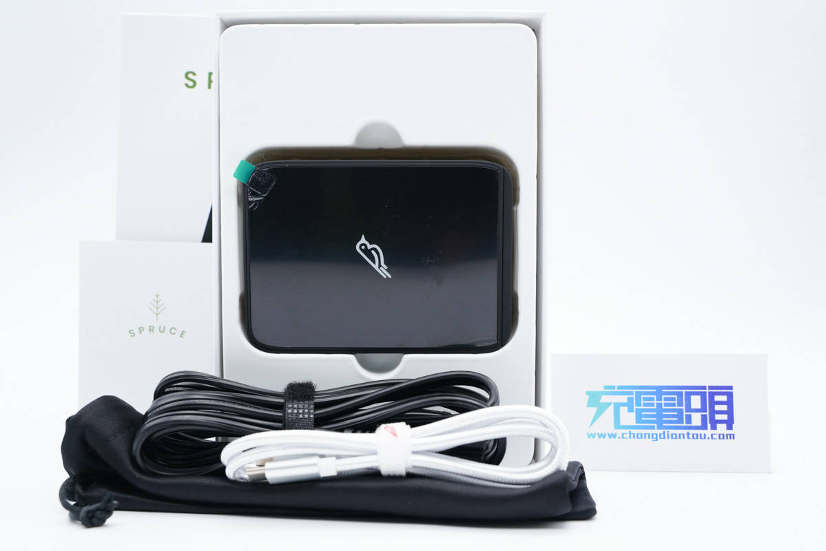 包裝內(nèi)含充電器、電源線、CC數(shù)據(jù)線、收納袋和使用說(shuō)明書(shū)。