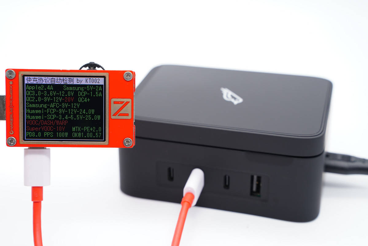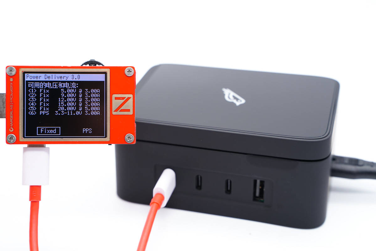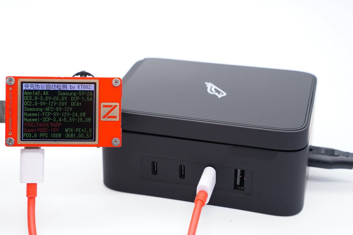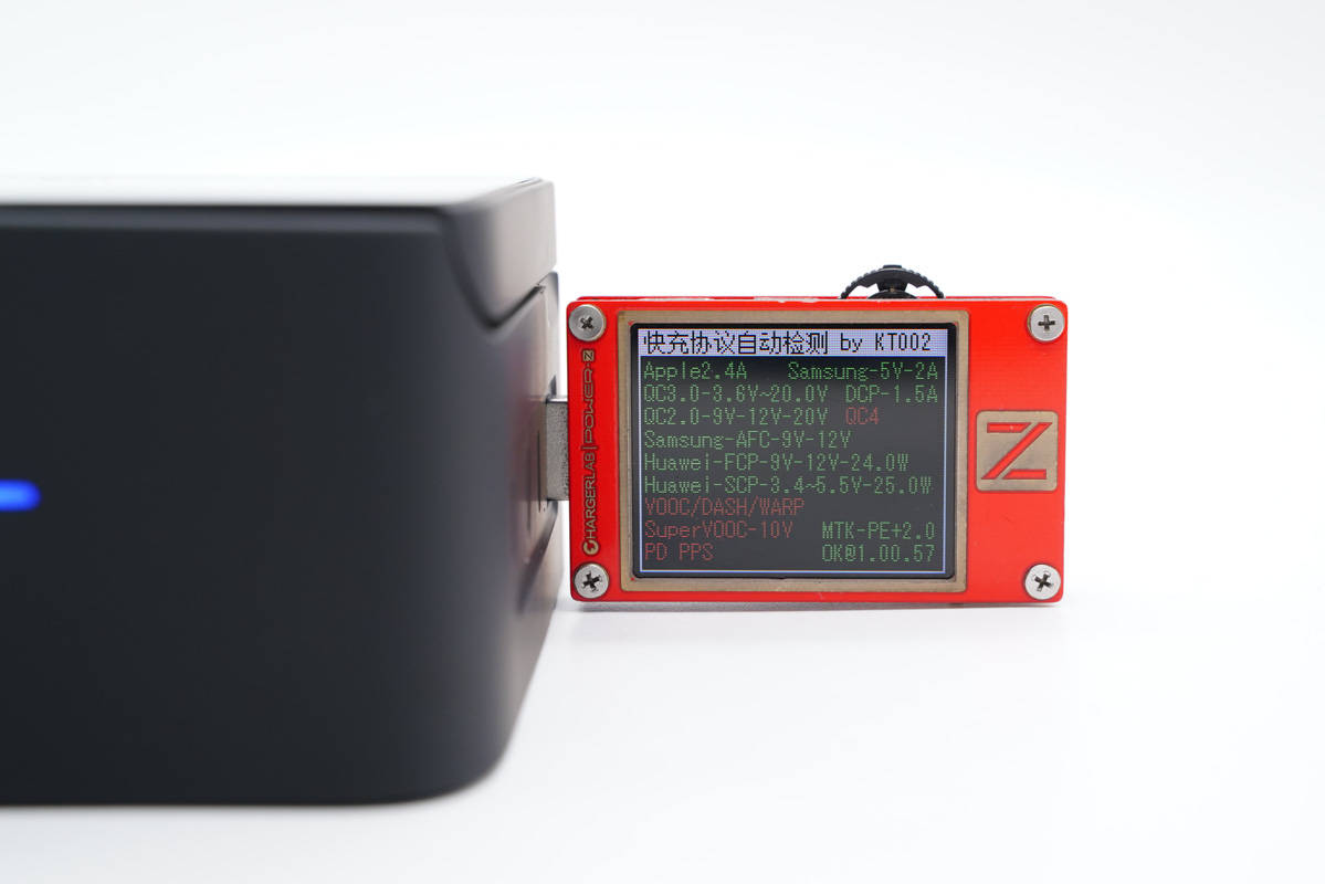 使用ChargerLAB POWER-Z KT002測(cè)得USB-C1口支持Apple 2.4A、Samsung 5V2A、DCP協(xié)議,以及QC2.0/3.0、AFC、FCP、SCP、PE2.0、PD3.0、PPS多個(gè)快充協(xié)議。