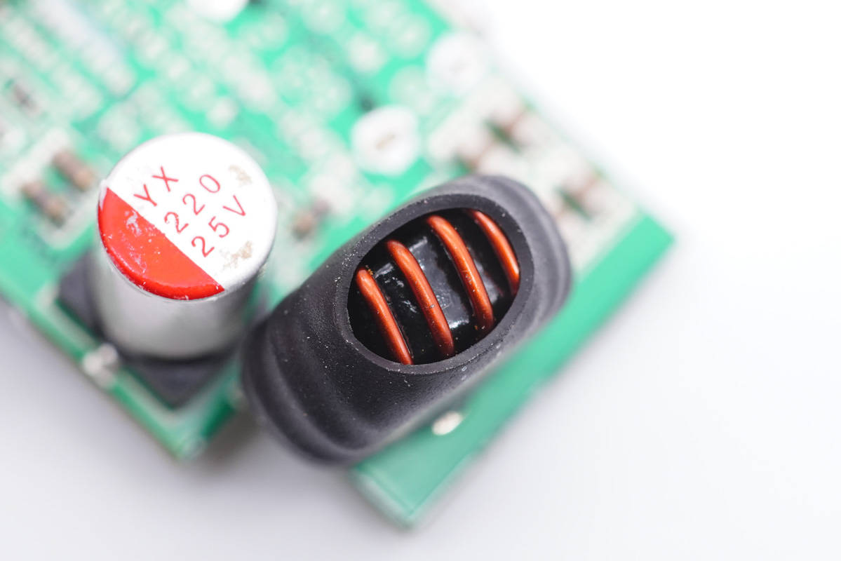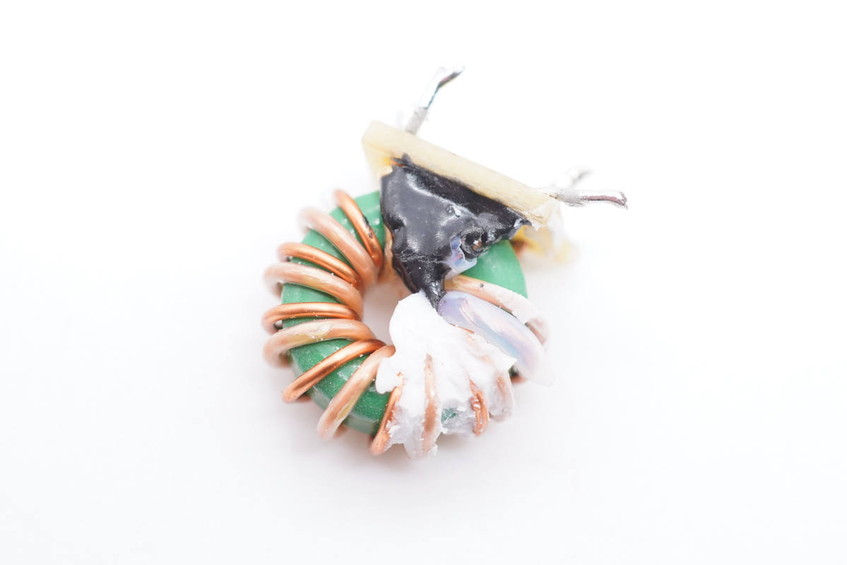 PFC升壓電感特寫(xiě),包裹絕緣膠帶。