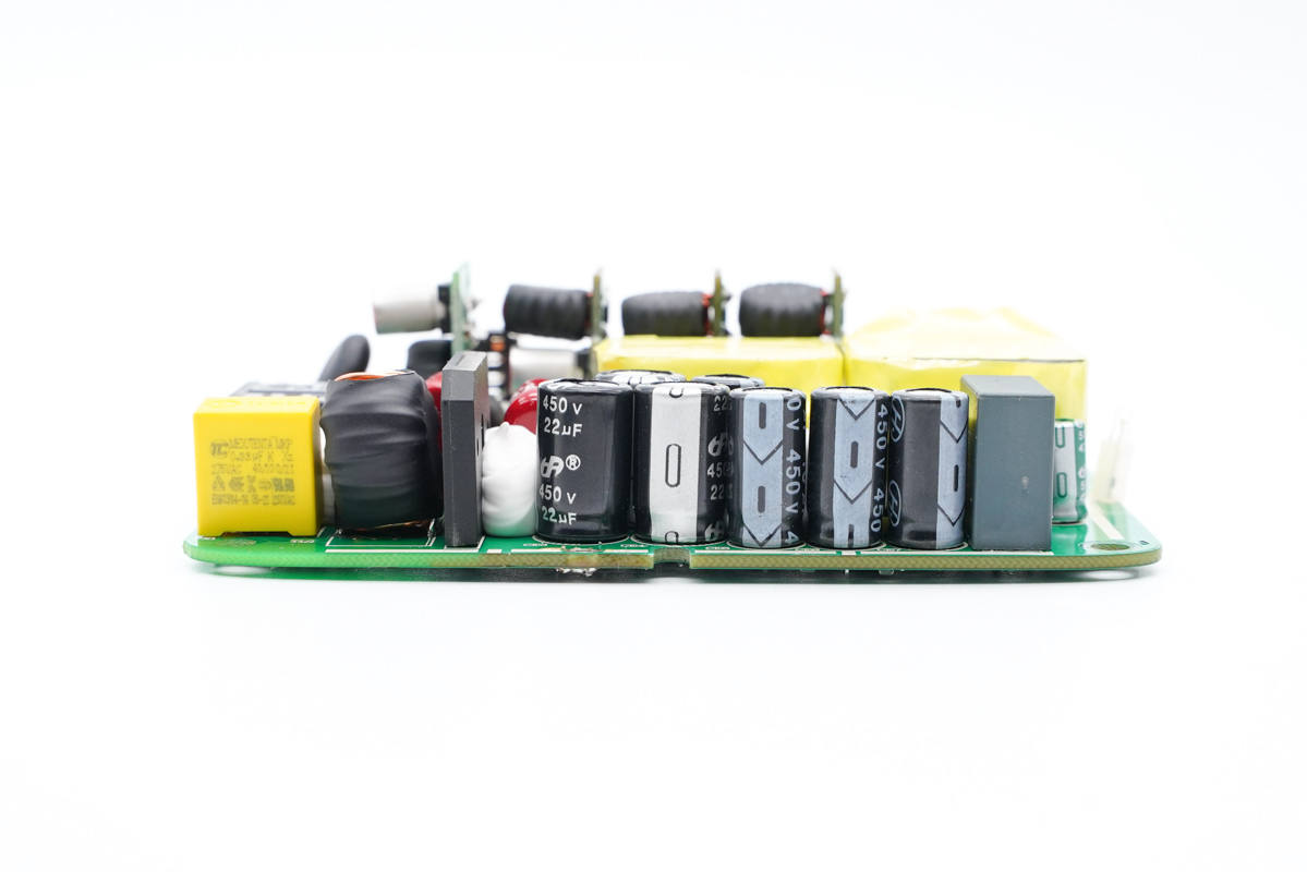 四顆小的電容規(guī)格為450V 10μF,濾波電容容量共計(jì)106μF。