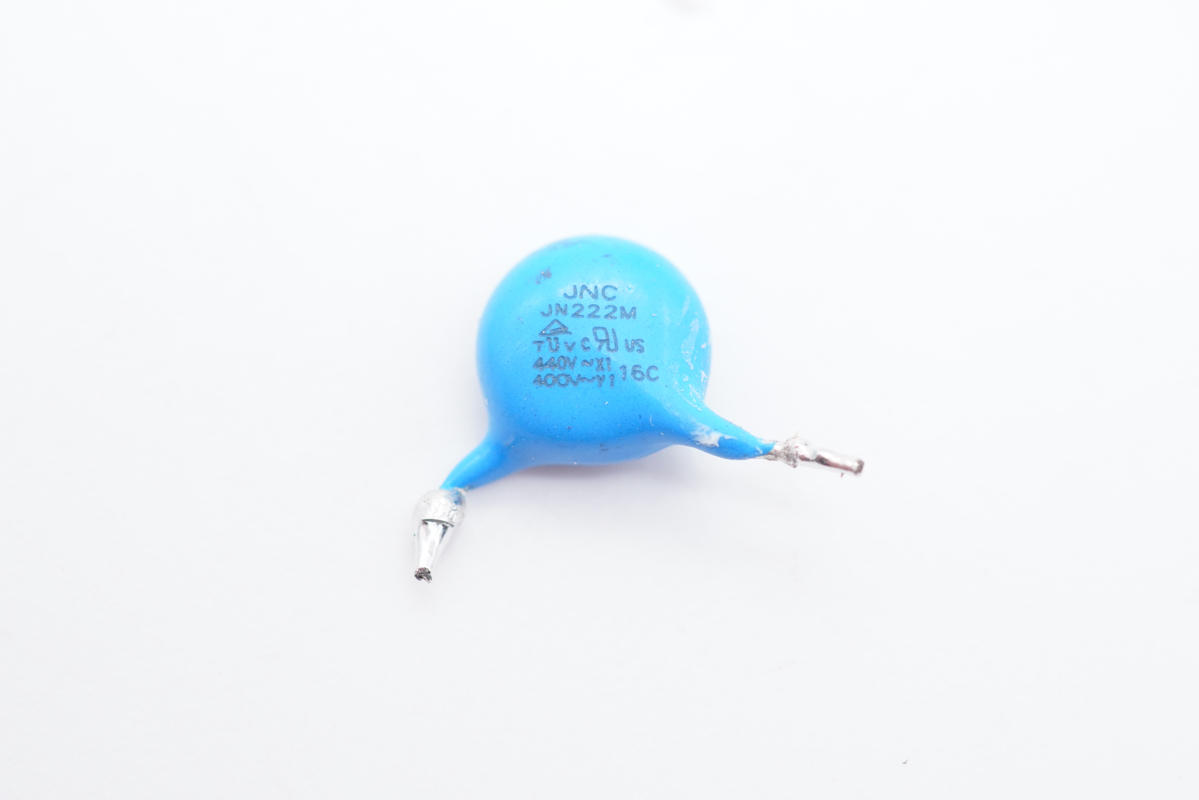 另一顆Y電容特寫(xiě),兩顆均來(lái)自JNC東莞嘉耐電子有限公司。