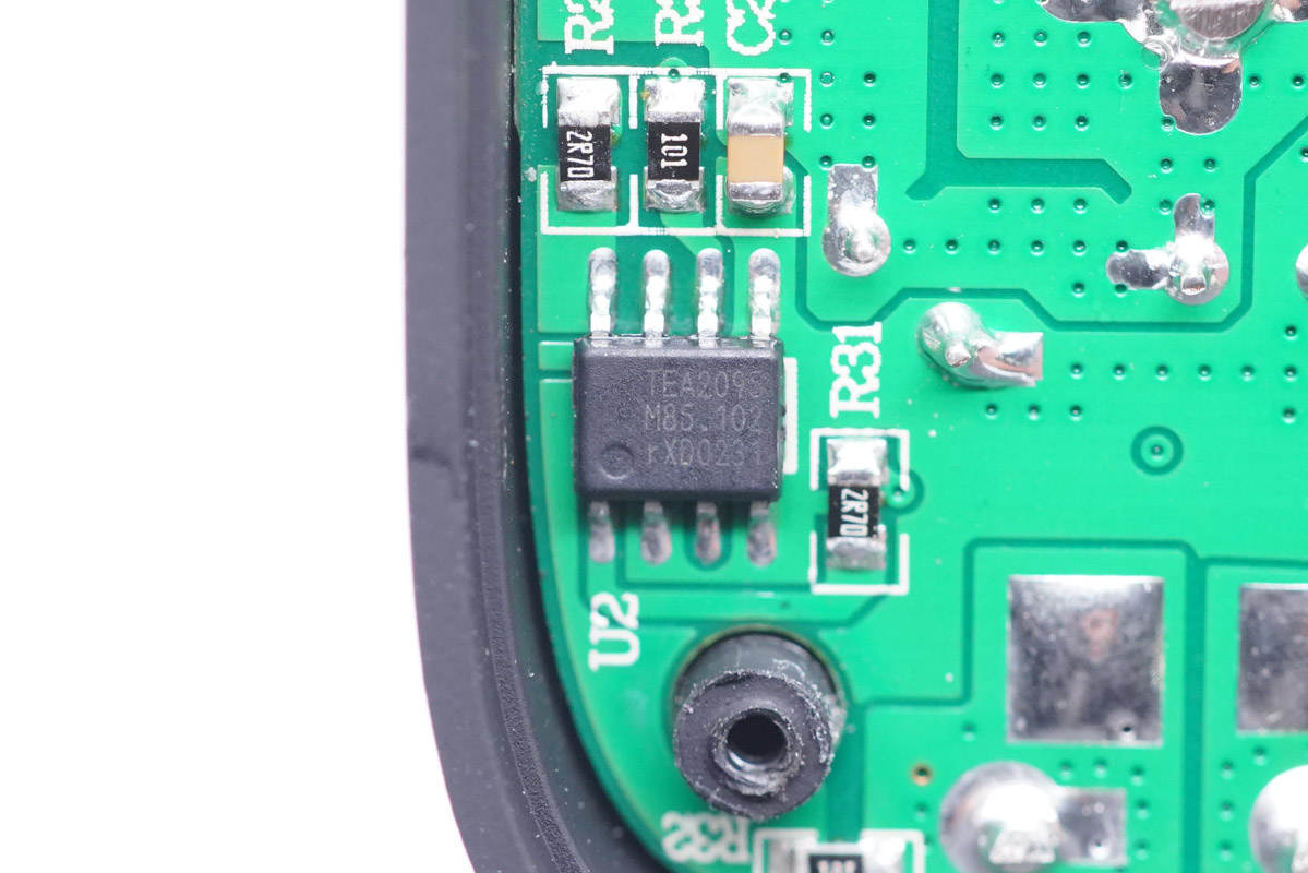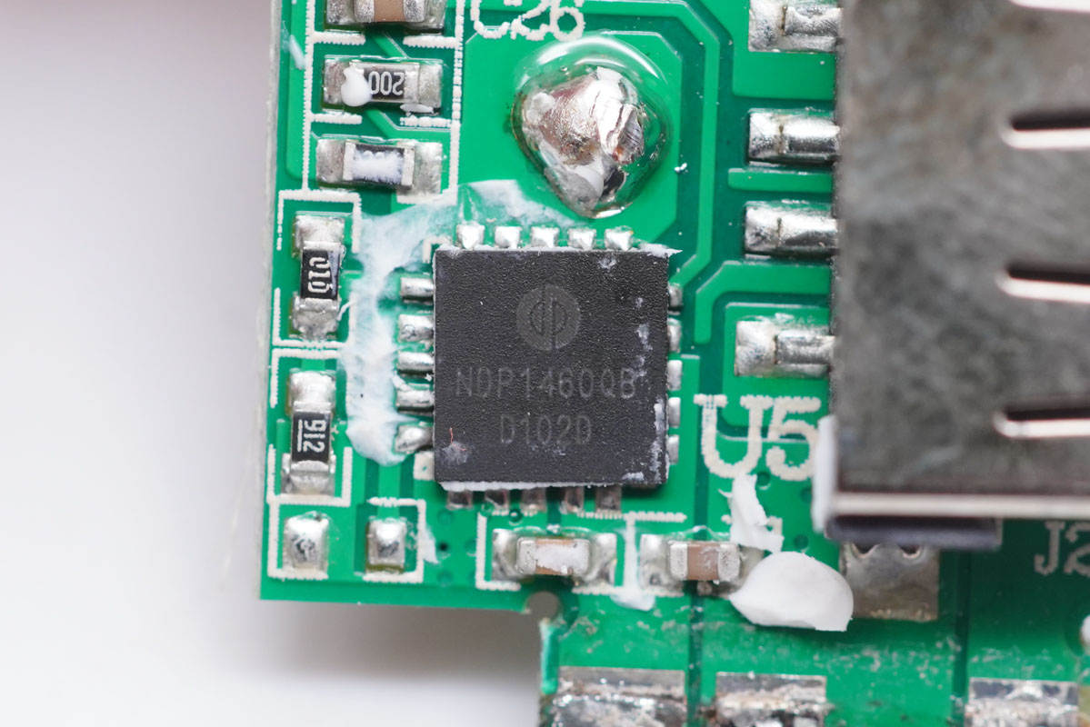 拆掉小板,發(fā)現(xiàn)主板上有一顆MCU,用于多口輸出功率智能分配。