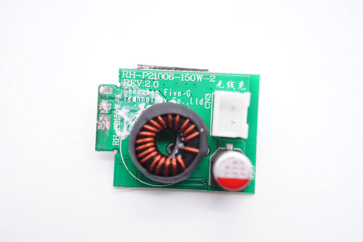 將無(wú)線充電板拆開(kāi),內(nèi)設(shè)無(wú)線充PCB板和雙線圈。