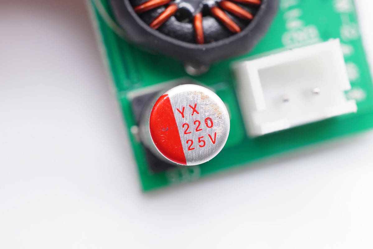 濾波電容特寫(xiě),規(guī)格為25V 220μF。