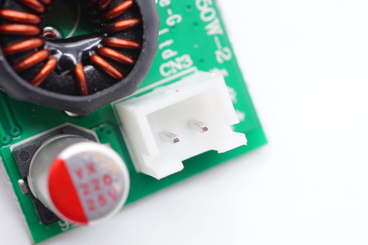 小板背面設(shè)有降壓電感、濾波電容和連接插槽。