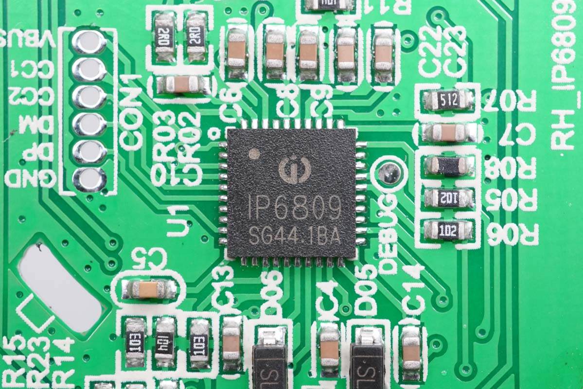 另外拆開(kāi)無(wú)線充電板發(fā)現(xiàn),無(wú)線充方案采用的是英集芯IP6809,集成度高。總的來(lái)說(shuō)產(chǎn)品用料不錯(cuò)。