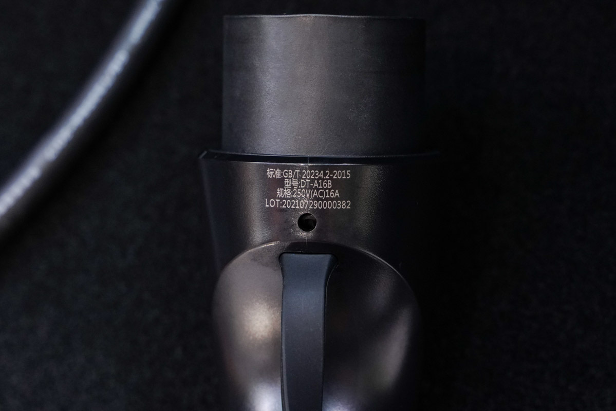 新能源隨車充的16A插頭連接到轉接器部分,最后將組合連接到10A規格的插座用于充電,不過充電電流會限制在10A Max 。