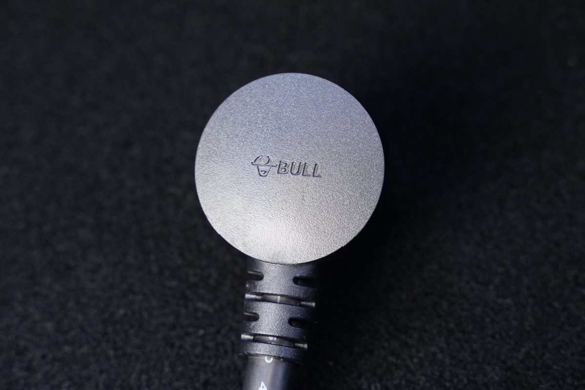 先來逐個了解,槍頭部分采用了亮黑加烤漆黑的外觀設計,正面凹印著BULL的品牌Logo。