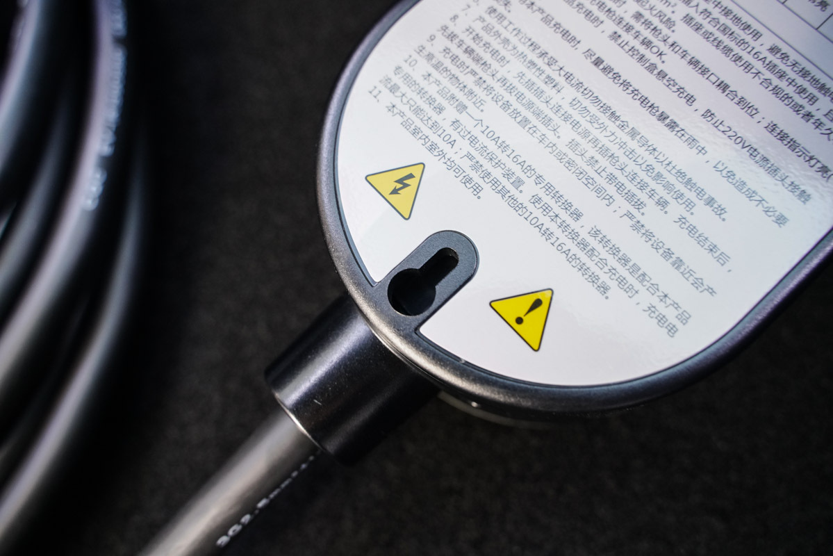 注意事項:必須要連接已接地的插座充電;只能插入符合國標的16A插座,且16A插座的配線線徑必須≥2.5mm2;禁止控制盒懸空充電;充電時避免將新能源隨車充暴露在雨中;如果要使用10A規格插座充電必須要搭配附帶的轉接器。
