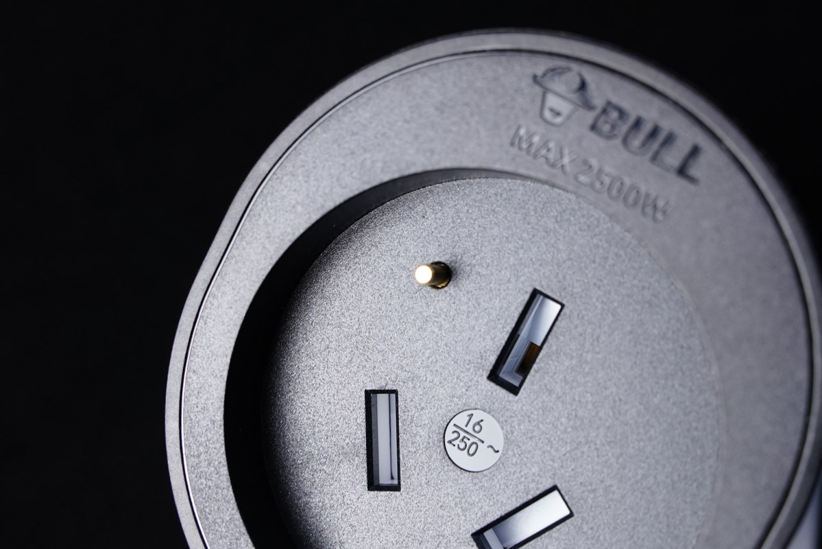 連接電源的插頭端,上面同樣凹印著BULL的品牌Logo。