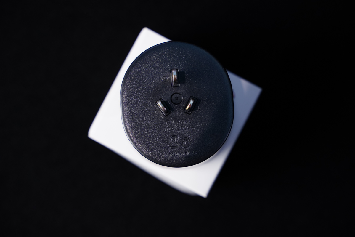 將公牛新能源隨車充連接至電源插座,由于連接的是10A規格的電源插座,所以在此次充電連接中需要使用附帶的轉換器才可以正常連接充電。