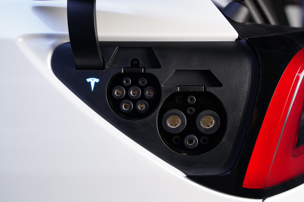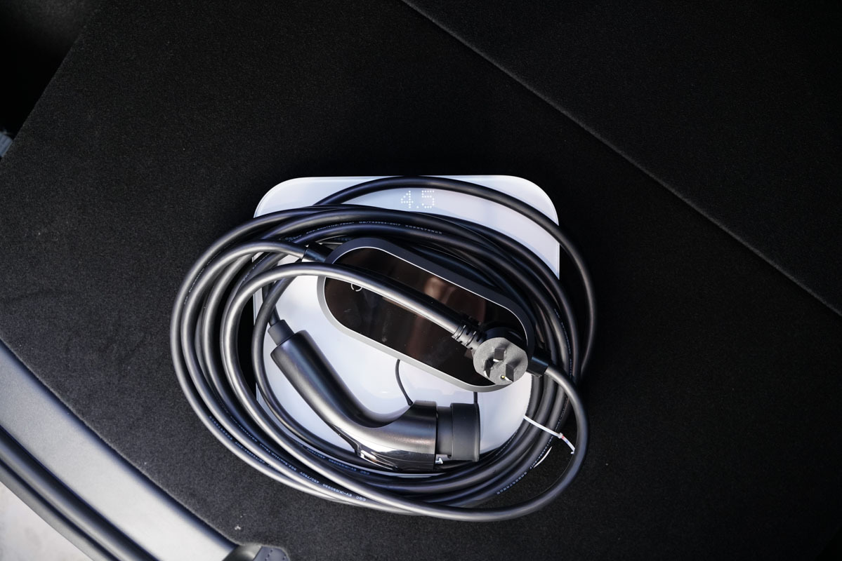 介紹完了新能源隨車充部分,再來看這個大件兒吧。特斯拉Model Y配備了兩種充電接口,左側適用于便攜式的小型汽車新能源隨車充,而右側的充電接口則適用于一些大電流的超級充電樁。