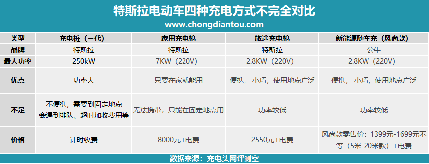 這里主要匯總了功率、優點、不足以及價格等因素,方便大家直觀的了解。四種充電方式覆蓋了不同的使用場景,互相之間有重合的地方也有區別。