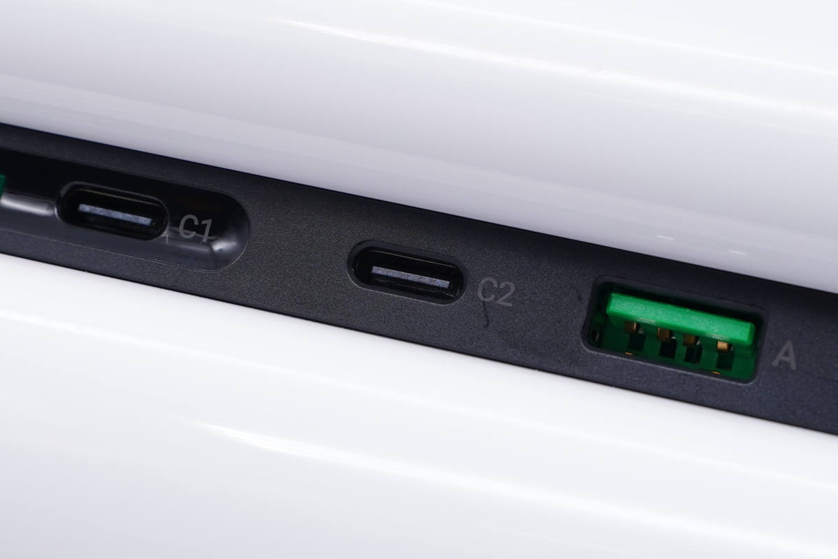 兩個(gè)USB-C接口旁印有C1和C2區(qū)別標(biāo)識(shí)。