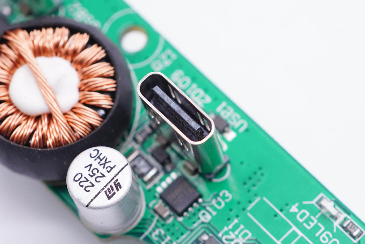 USB-C1母座特寫,垂直過孔焊接。