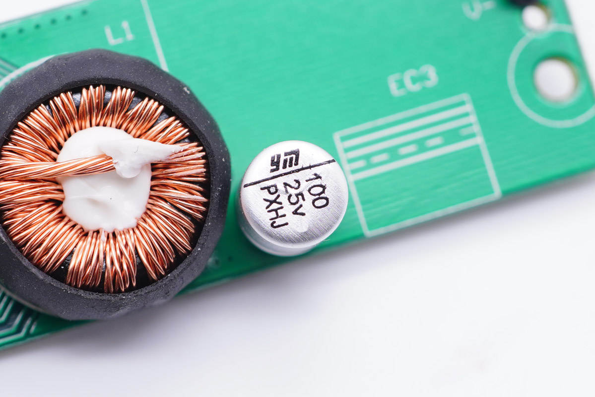 另一顆電容來自艾華,旁邊是一顆色環(huán)電感。