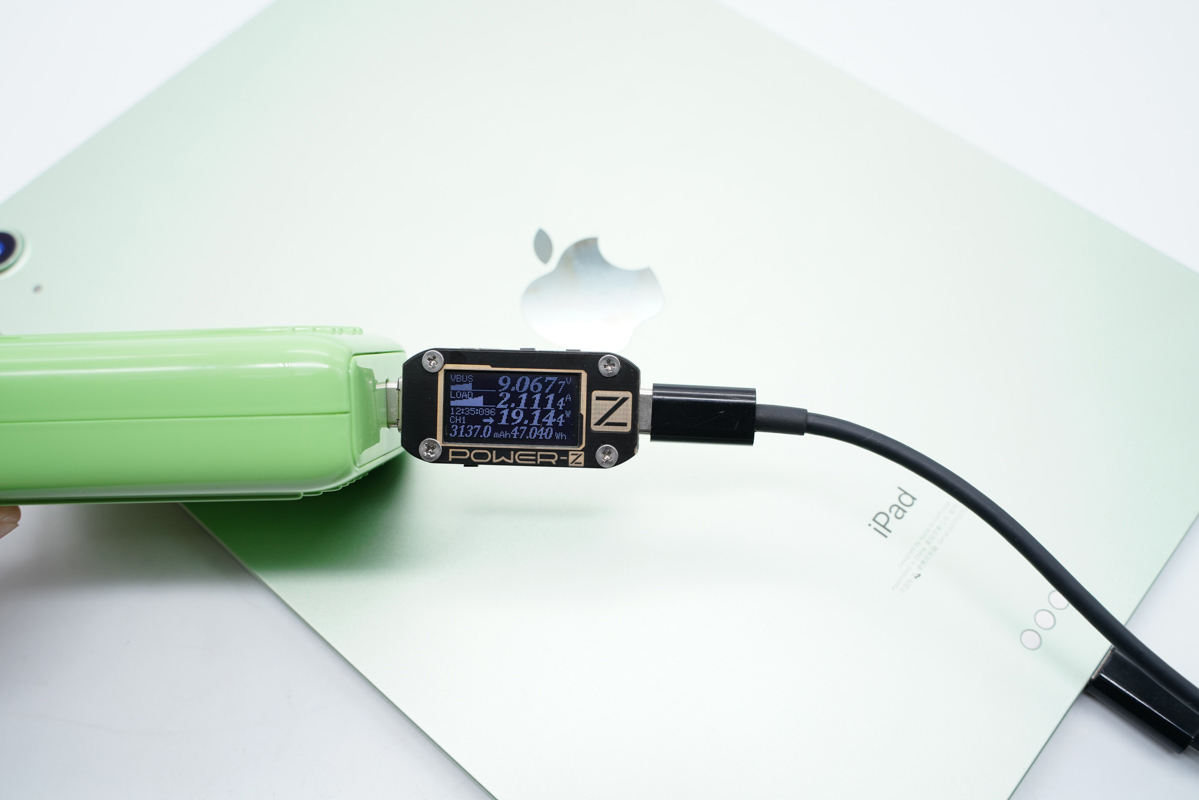 iPad Air 4支持USB PD充電協議,使用USB-C為平板充電,輸出功率為9.06V/2.11A,19.14W。